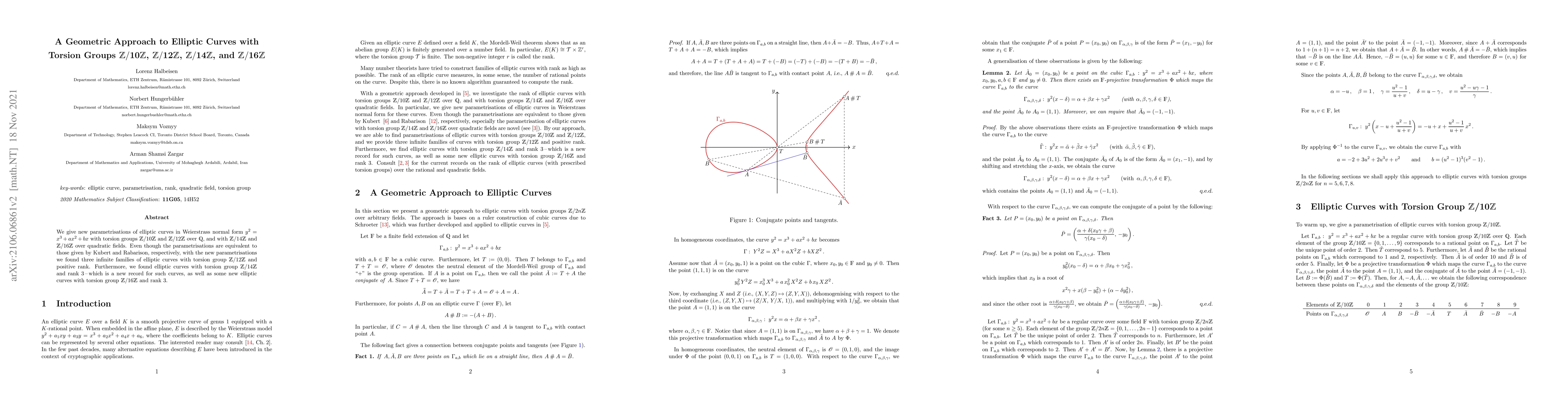 We give new parametrisations of elliptic curves in Weierstrass normal form $y^2=x^3+ax^2+bx$ with torsion groups $\mathbb{Z}/10\mathbb{Z}$ and $\mathbb{Z}/12\mathbb{Z}$ over $\mathbb{Q}$, and with $\mathbb{Z}/14\mathbb{Z}$ and $\mathbb{Z}/16\mathbb{Z}$ over quadratic fields. Even though the parametrisations are equivalent to those given by Kubert and Rabarison, respectively, with the new parametrisations we found three infinite families of elliptic curves with torsion group $\mathbb{Z}/12\mathbb{Z}$ and positive rank. Furthermore, we found elliptic curves with torsion group $\mathbb{Z}/14\mathbb{Z}$ and rank $3$, which is a new record for such curves, as well as some new elliptic curves with torsion group $\mathbb{Z}/16\mathbb{Z}$ and rank $3$.