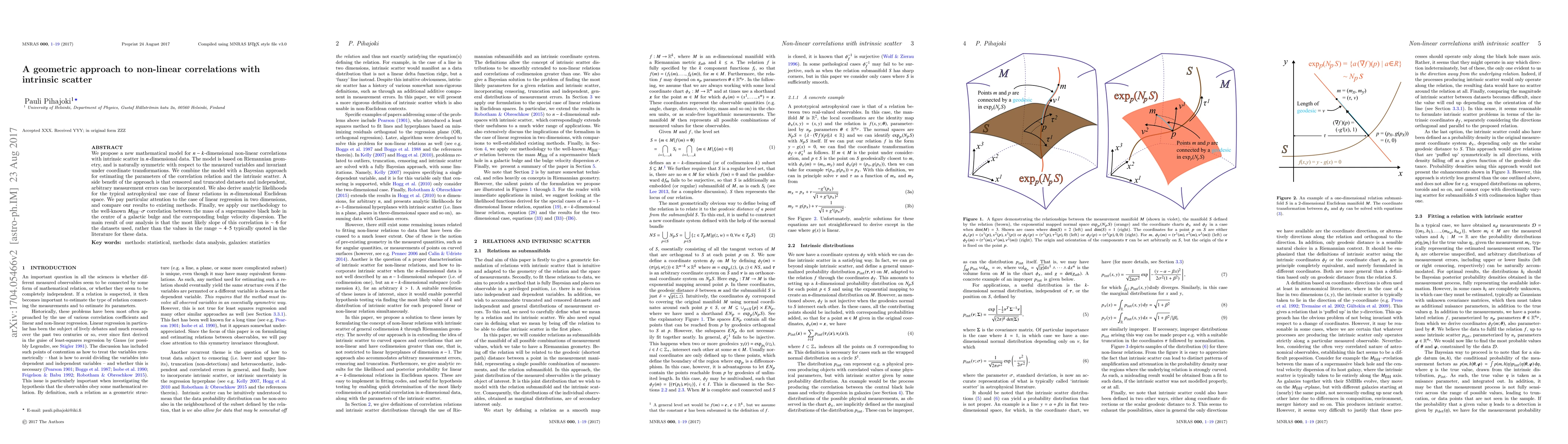 We propose a new mathematical model for $n-k$-dimensional non-linear correlations with intrinsic scatter in $n$-dimensional data. The model is based on Riemannian geometry, and is naturally symmetric with respect to the measured variables and invariant under coordinate transformations. We combine the model with a Bayesian approach for estimating the parameters of the correlation relation and the intrinsic scatter. A side benefit of the approach is that censored and truncated datasets and independent, arbitrary measurement errors can be incorporated. We also derive analytic likelihoods for the typical astrophysical use case of linear relations in $n$-dimensional Euclidean space. We pay particular attention to the case of linear regression in two dimensions, and compare our results to existing methods. Finally, we apply our methodology to the well-known $M_\text{BH}$-$\sigma$ correlation between the mass of a supermassive black hole in the centre of a galactic bulge and the corresponding bulge velocity dispersion. The main result of our analysis is that the most likely slope of this correlation is $\sim 6$ for the datasets used, rather than the values in the range $\sim 4$-$5$ typically quoted in the literature for these data.