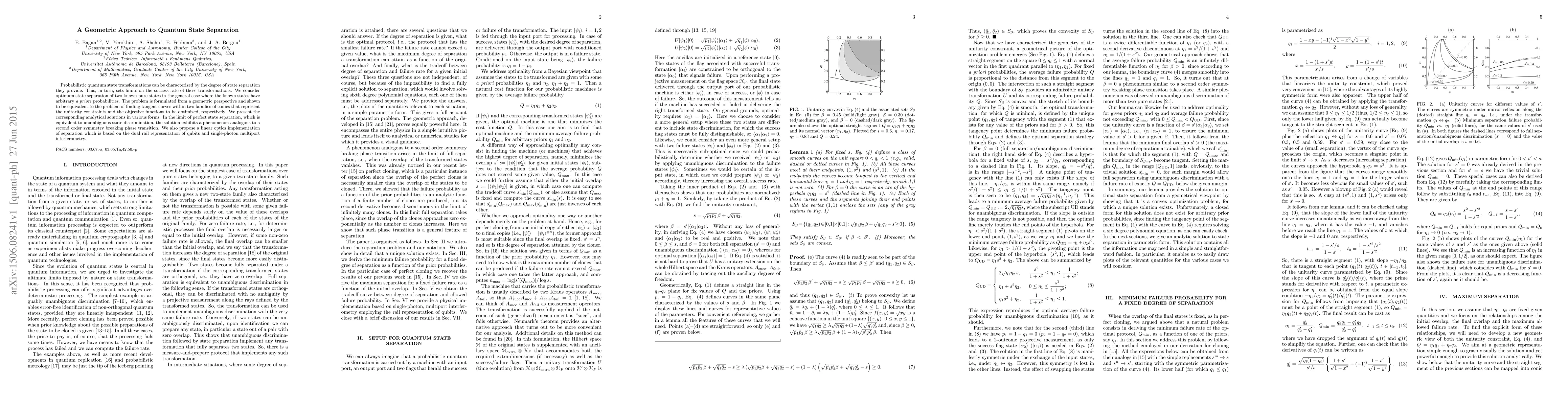 Researchers develop a geometric approach to optimize state separation in quantum states, finding solutions that exhibit symmetry breaking phase transitions and proposing a linear optics implementation.