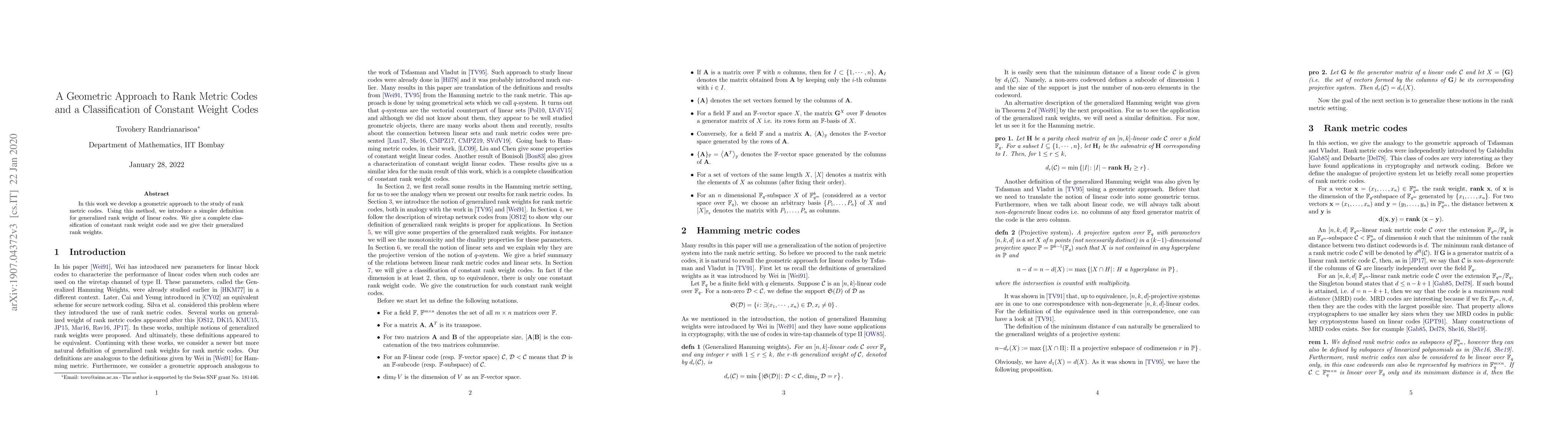 This paper presents a geometric approach to rank metric codes, simplifying the definition of generalized rank weight for linear codes. It provides a complete classification of constant weight codes along with their generalized rank weights.