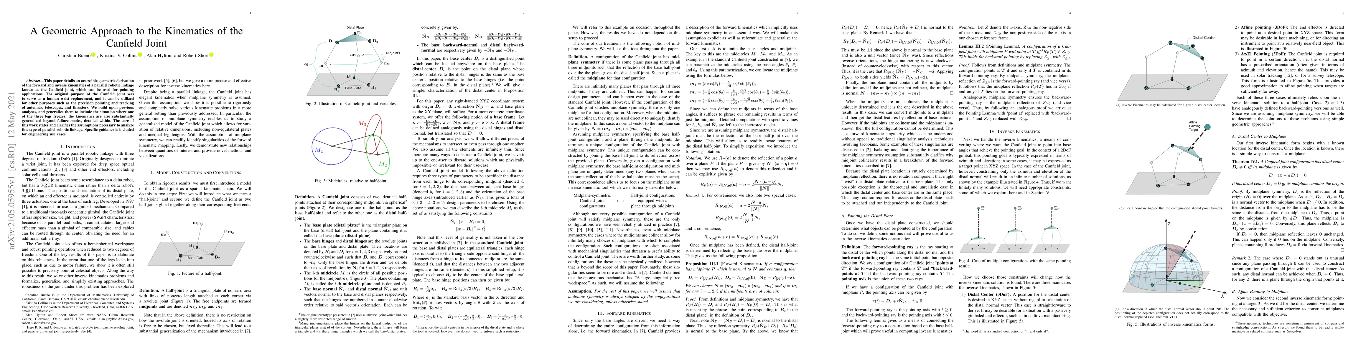 This paper details an accessible geometric derivation of the forward and inverse kinematics of a parallel robotic linkage known as the Canfield joint, which can be used for pointing applications. The original purpose of the Canfield joint was to serve as a human wrist replacement, and it can be utilized for other purposes such as the precision pointing and tracking of antennas, telescopes, and thrusters. We build upon previous analyses, and generalize them to include the situation where one of the three legs freezes; the kinematics are also substantially generalized beyond failure modes, detailed within. The core of this work states and clarifies the assumptions necessary to analyze this type of parallel robotic linkage. Specific guidance is included for engineering use cases.