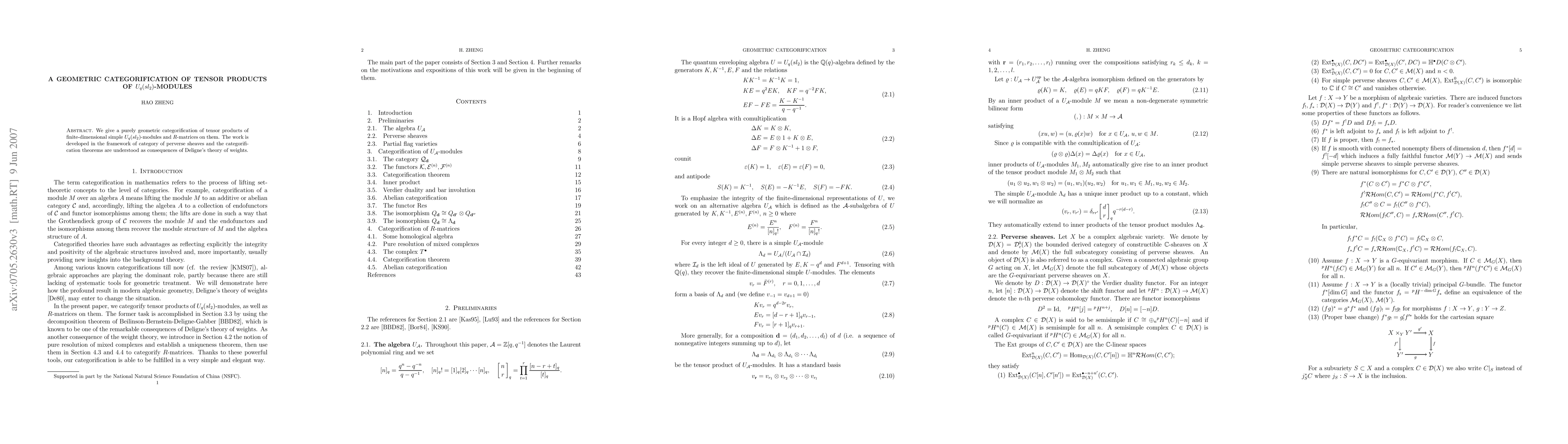 This paper presents a geometric categorification of tensor products of finite-dimensional simple $U_q(sl_2)$-modules using the framework of perverse sheaves, linking these results to Deligne's theory of weights. The approach provides a new perspective on $R$-matrices through categorical structures.