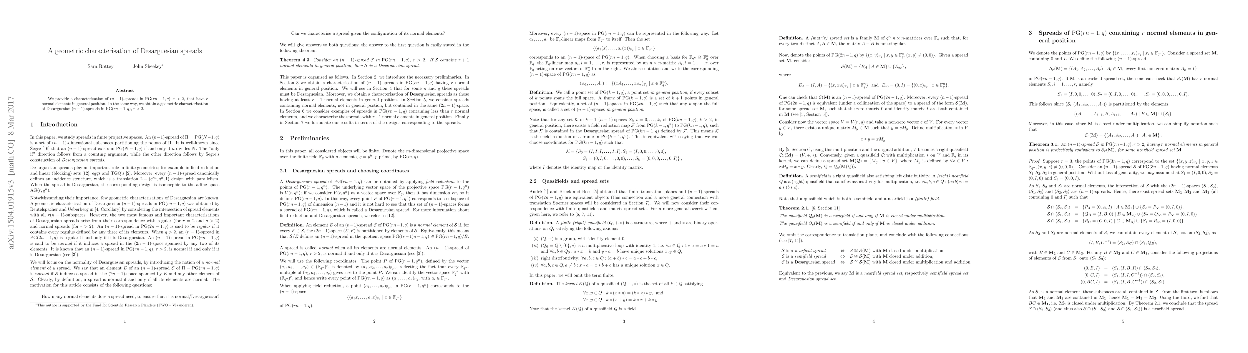 We provide a characterisation of $(n-1)$-spreads in $\mathrm{PG}(rn-1,q)$ that have $r$ normal elements in general position. In the same way, we obtain a geometric characterisation of Desarguesian $(n-1)$-spreads in $\mathrm{PG}(rn-1,q)$, $r>2$.