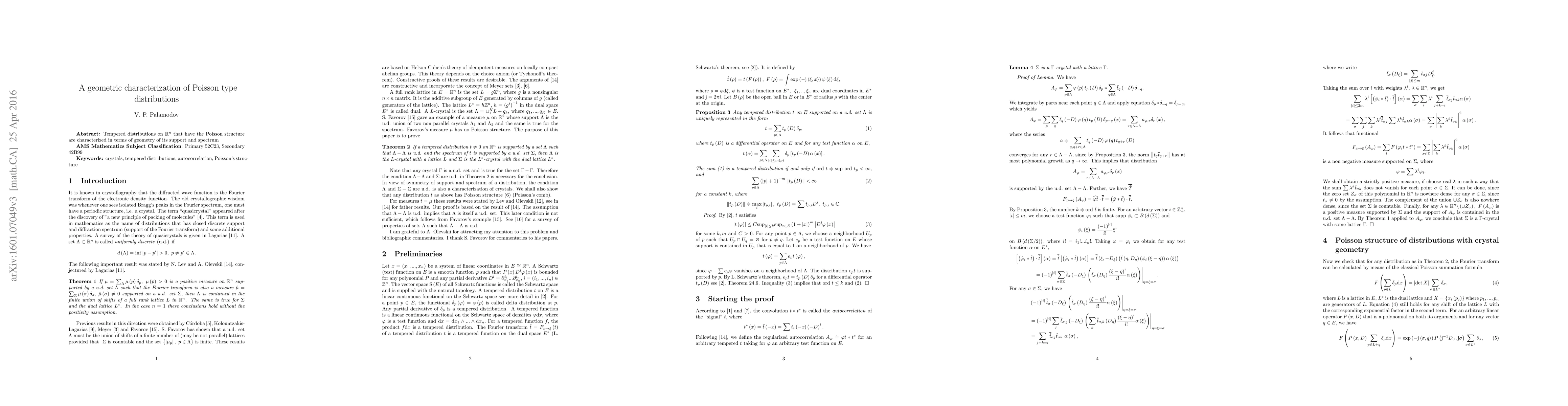 Tempered distributions on Rn that have the Poisson structure are characterized in terms of geometry of its support and spectrum