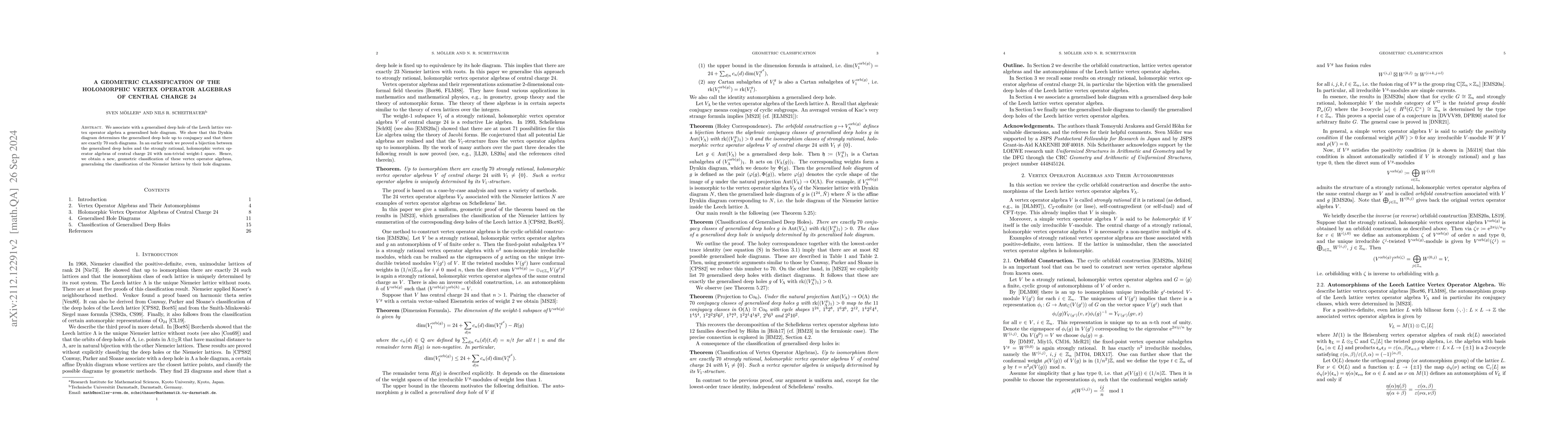This paper establishes a geometric classification of holomorphic vertex operator algebras with central charge 24 by associating generalised deep holes of the Leech lattice vertex operator algebra with Dynkin diagrams, revealing exactly 70 such diagrams and proving their determinative role in classifying these algebras.