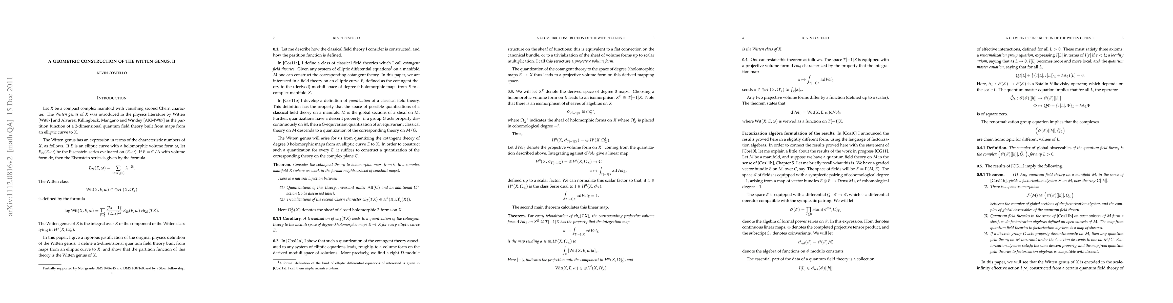 I give a rigorous construction of a 2-dimensional quantum field theory of maps from an elliptic curve to a compact complex manifold X, and I show that the partition function of this theory is the Witten genus of X. The results proved here were announced (in a slightly different form) in arXiv:1006.5422.