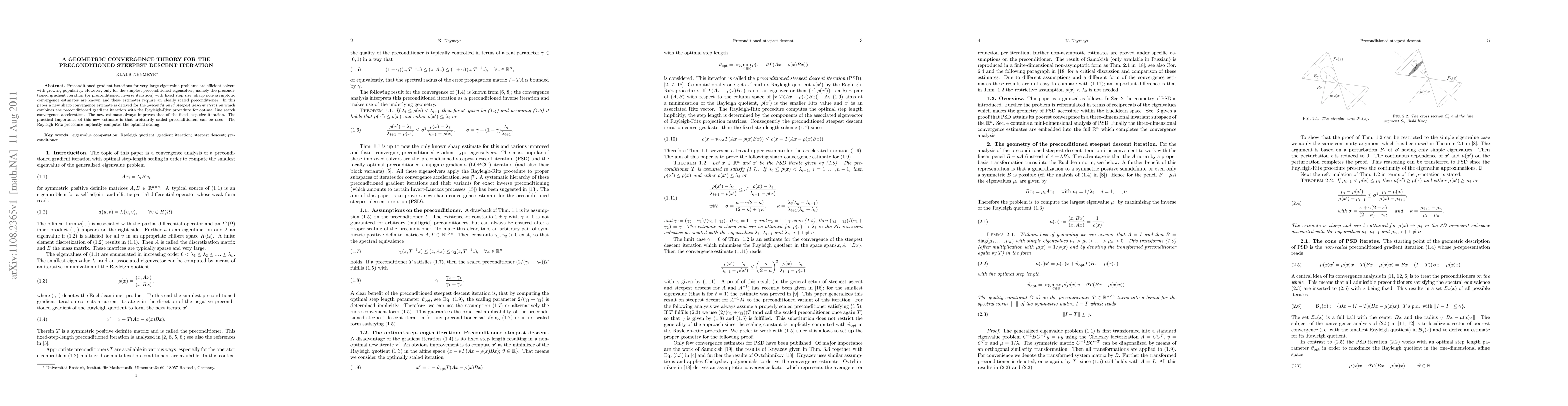 This paper introduces a new sharp convergence estimate for the preconditioned steepest descent iteration, improving upon the fixed step size iteration. It allows for the use of arbitrarily scaled preconditioners, enhancing practical applicability.
