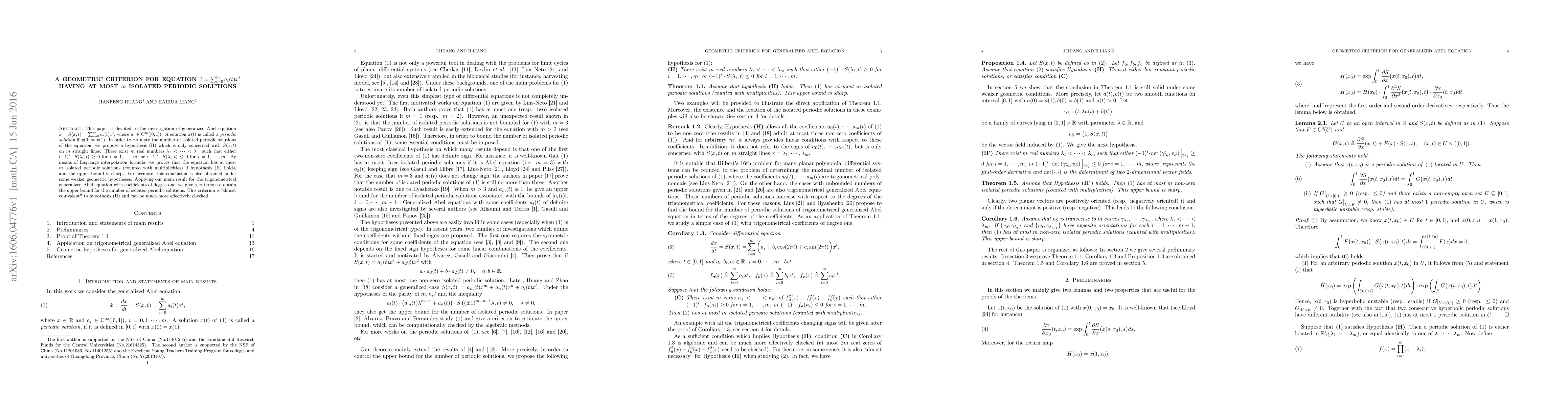 This paper is devoted to the investigation of generalized Abel equation $\dot{x}=S(x,t)=\sum^m_{i=0}a_i(t)x^i$, where $a_i\in\mathrm C^{\infty}([0,1])$. A solution $x(t)$ is called a {\em periodic solution} if $x(0)=x(1)$. In order to estimate the number of isolated periodic solutions of the equation, we propose a hypothesis (H) which is only concerned with $S(x,t)$ on $m$ straight lines: There exist $m$ real numbers $\lambda_1<\cdots<\lambda_m$ such that either $(-1)^i\cdot S(\lambda_i,t)\geq0$ for $i=1,\cdots,m$, or $(-1)^i\cdot S(\lambda_i,t)\leq0$ for $i=1,\cdots,m$. By means of Lagrange interpolation formula, we proves that the equation has at most $m$ isolated periodic solutions (counted with multiplicities) if hypothesis (H) holds, and the upper bound is sharp. Furthermore, this conclusion is also obtained under some weaker geometric hypotheses. Applying our main result for the trigonometrical generalized Abel equation with coefficients of degree one, we give a criterion to obtain the upper bound for the number of isolated periodic solutions. This criterion is "almost equivalent" to hypothesis (H) and can be much more effectively checked.