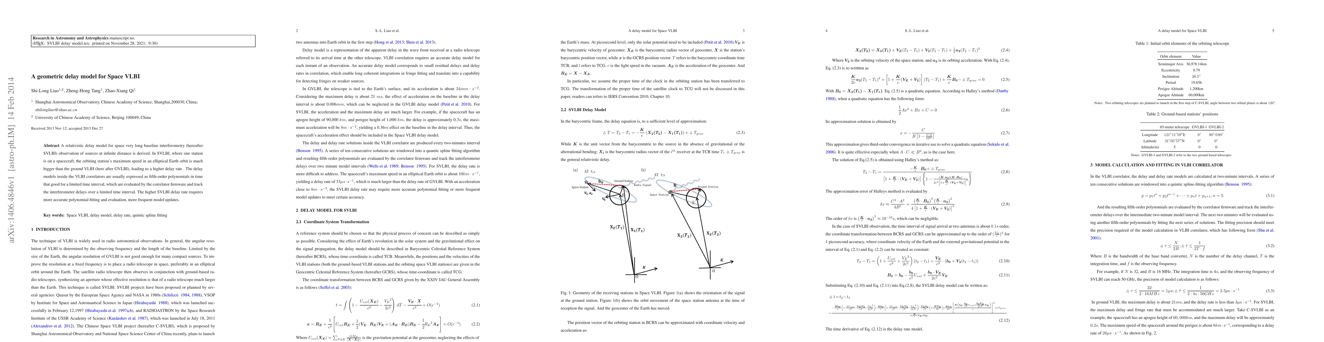 A relativistic delay model for space very long baseline interferometry (hereafter SVLBI) observation of sources at infinite distance is derived. In SVLBI, where one station is on a spacecraft, the orbiting station's maximum speed in an elliptical Earth orbit is much bigger than the ground VLBI (here after GVLBI), leading to a higher delay rate . The delay models inside the VLBI correlators are usually expressed as fifth-order polynomials in time that good for a limited time interval, which are evaluated by the correlator firmware and track the interferometer delays over a limited time interval. The higher SVLBI delay rate requires more accurate polynomial fitting and evalution, more frequent model updates.