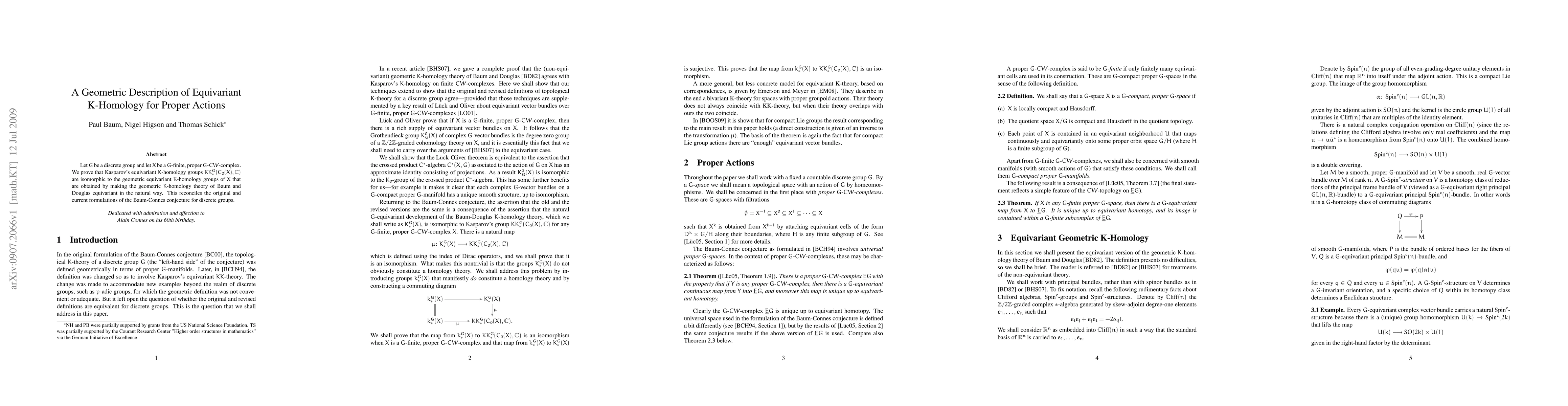 The paper proves an isomorphism between Kasparov's equivariant K-homology and geometric equivariant K-homology for proper G-CW-complexes, aligning the original and modern versions of the Baum-Connes conjecture. This establishes a unified perspective on equivariant K-homology.
