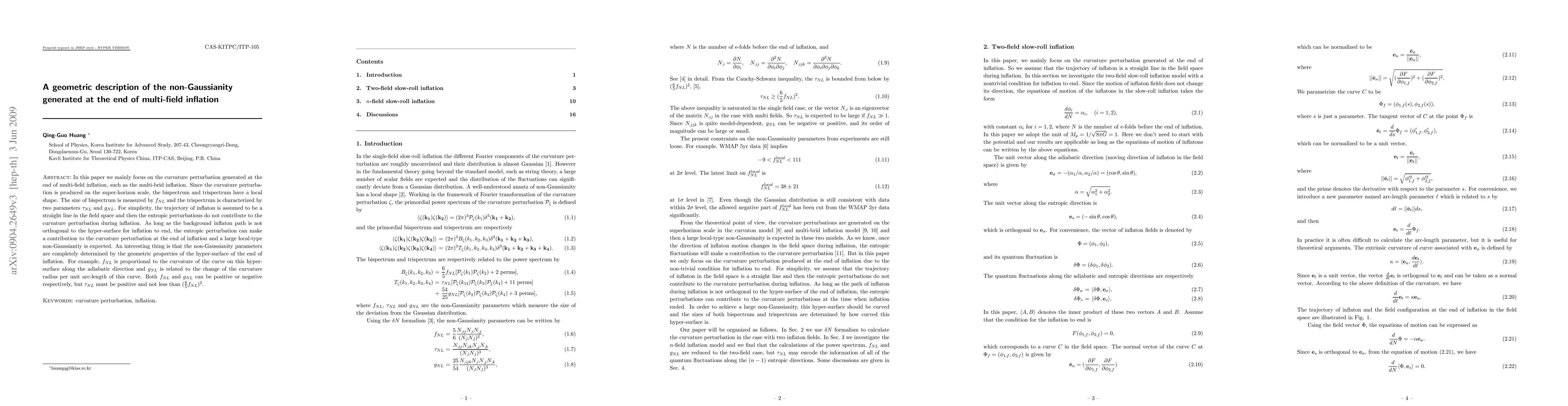 This paper explores the non-Gaussianity generated at the end of multi-field inflation, focusing on the curvature perturbation and its geometric description. It finds that the non-Gaussianity parameters are determined by the geometric properties of the hyper-surface where inflation ends, with $f_{NL}$ and $g_{NL}$ linked to curvature and curvature radius changes, respectively.