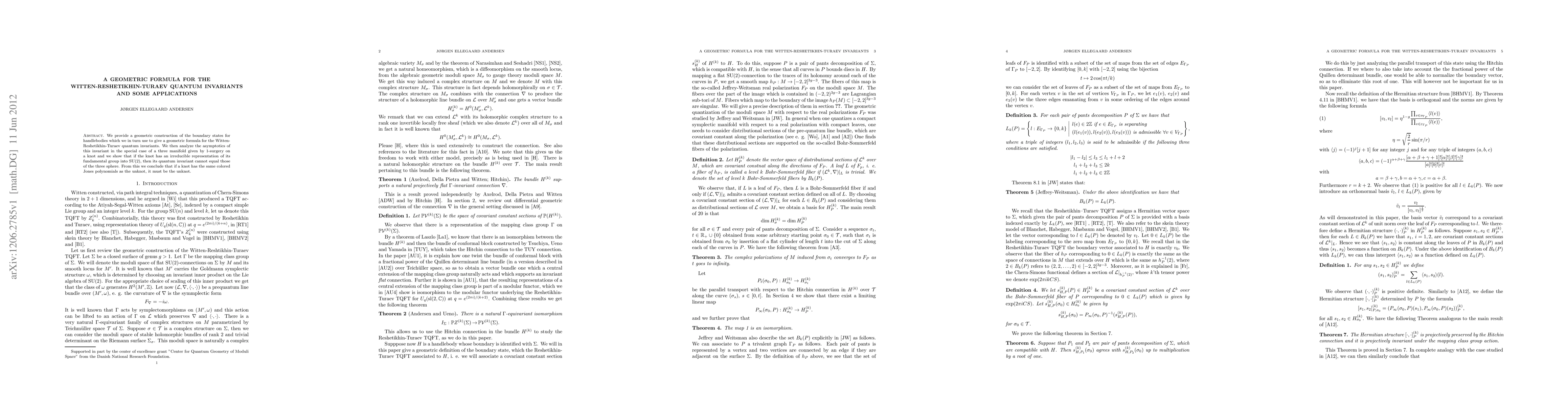 We provide a geometric construction of the boundary states for handlebodies which we in turn use to give a geometric formula for the Witten-Reshetikhin-Turaev quantum invariants. We then analyze the asymptotics of this invariant in the special case of a three manifold given by 1-surgery on a knot and we show that if the knot has an irreducible representation of its fundamental group into SU(2), then its quantum invariant cannot equal those of the three sphere. From this we conclude that if a knot has the same colored Jones polynomials as the unknot, it must be the unknot.