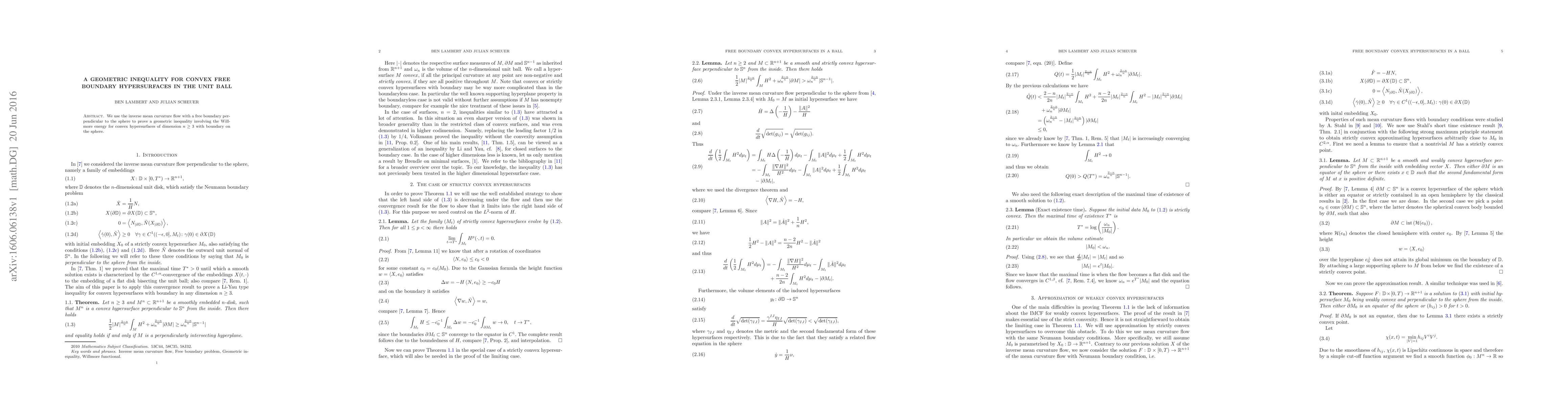 We use the inverse mean curvature flow with a free boundary perpendicular to the sphere to prove a geometric inequality involving the Willmore energy for convex hypersurfaces of dimension $n\geq 3$ with boundary on the sphere.