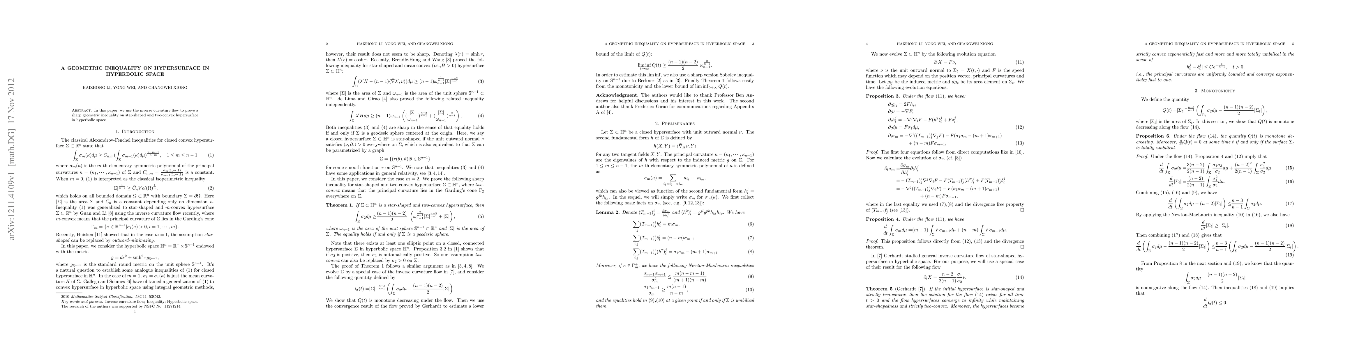 In this paper, we use the inverse curvature flow to prove a sharp geometric inequality on star-shaped and two-convex hypersurface in hyperbolic space.