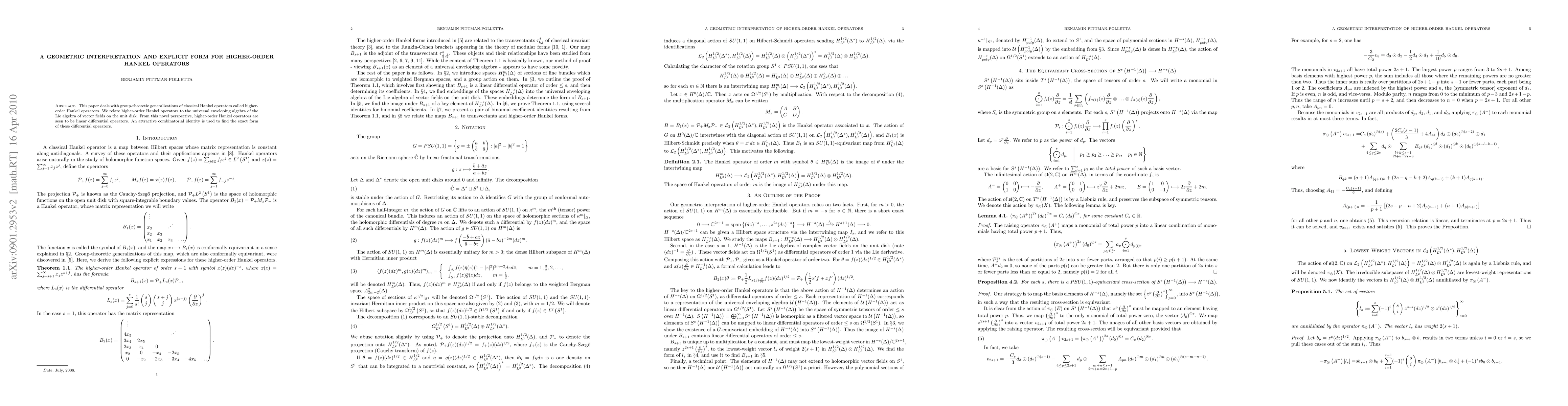 This paper deals with well-known higher-order generalizations of Hankel operators. We show that higher-order Hankel operators can be written explicitly as linear differential operators, and give the exact form of these differential operators. We also intoduce a novel Lie-theoretic perspective from which to study higher-order Hankel operators.