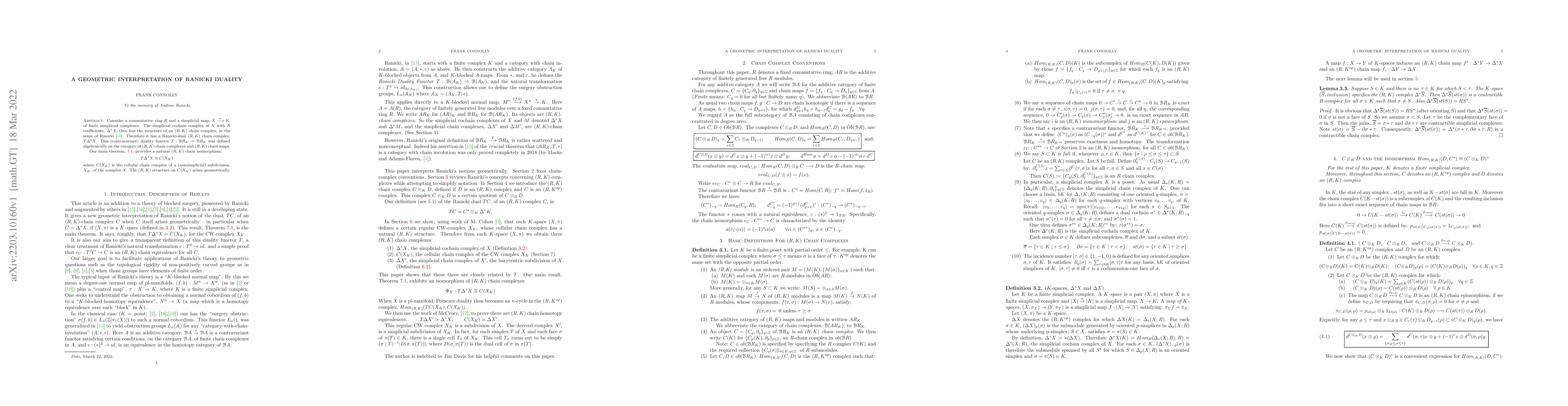The paper establishes an isomorphism between the Ranicki Duality functor and a cellular chain complex of a CW complex constructed from a given space, providing a geometric interpretation of Ranicki duality.
