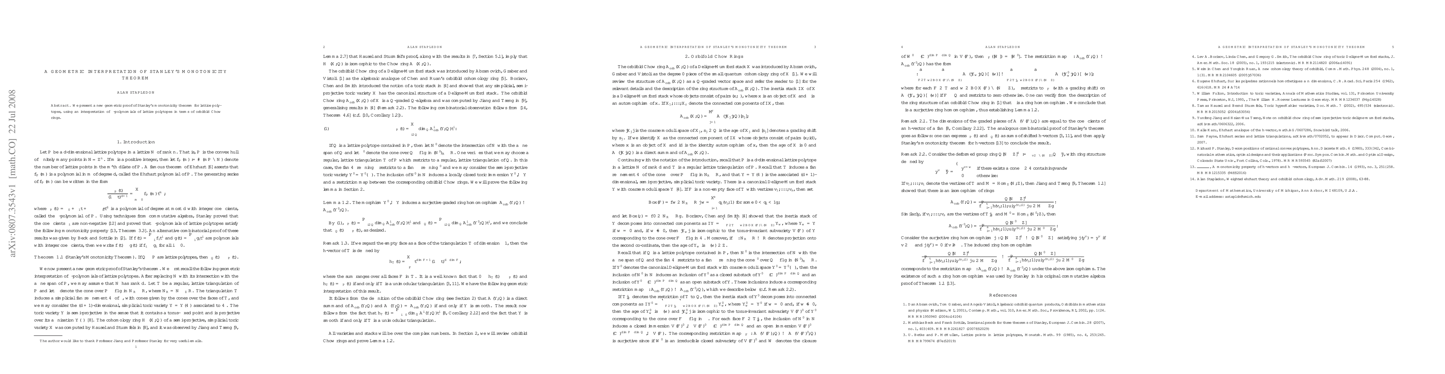 Summary: This paper offers a novel geometric proof of Stanley's monotonicity theorem for lattice polytopes, leveraging the interpretation of $\delta$-polynomials via orbifold Chow rings. The geometric approach provides new insights into the theorem's validity.