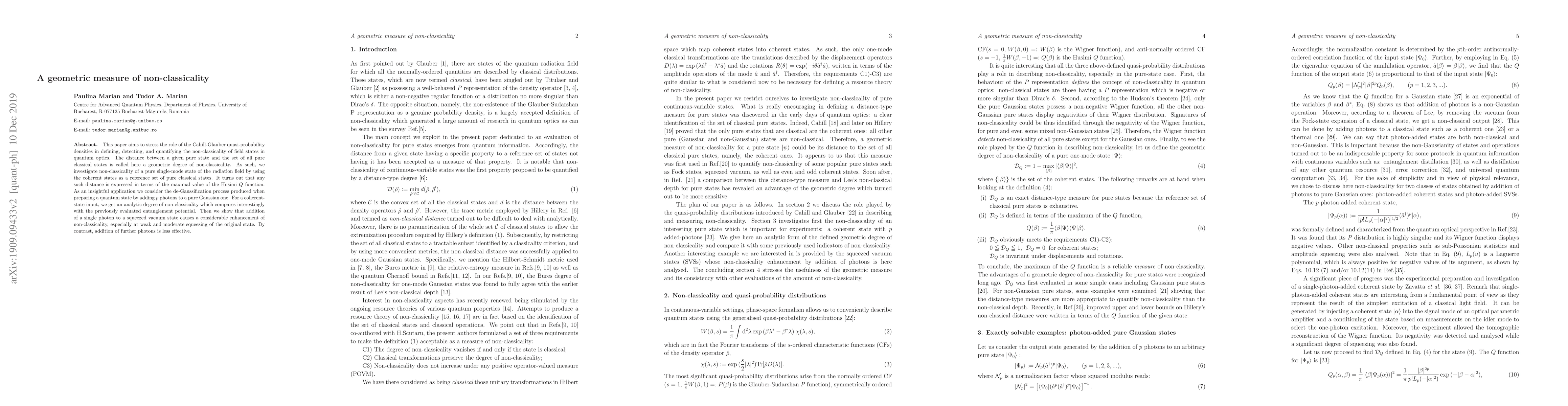 This paper aims to stress the role of the Cahill-Glauber quasi-probability densities in defining, detecting, and quantifying the non-classicality of field states in quantum optics. The distance between a given pure state and the set of all pure classical states is called here a geometric degree of non-classicality. As such, we investigate non-classicality of a pure single-mode state of the radiation field by using the coherent states as a reference set of pure classical states. It turns out that any such distance is expressed in terms of the maximal value of the Husimi $Q$ function. As an insightful application we consider the de-Gaussification process produced when preparing a quantum state by adding $p$ photons to a pure Gaussian one. For a coherent-state input, we get an analytic degree of non-classicality which compares interestingly with the previously evaluated entanglement potential. Then we show that addition of a single photon to a squeezed vacuum state causes a considerable enhancement of non-classicality, especially at weak and moderate squeezing of the original state. By contrast, addition of further photons is less effective.