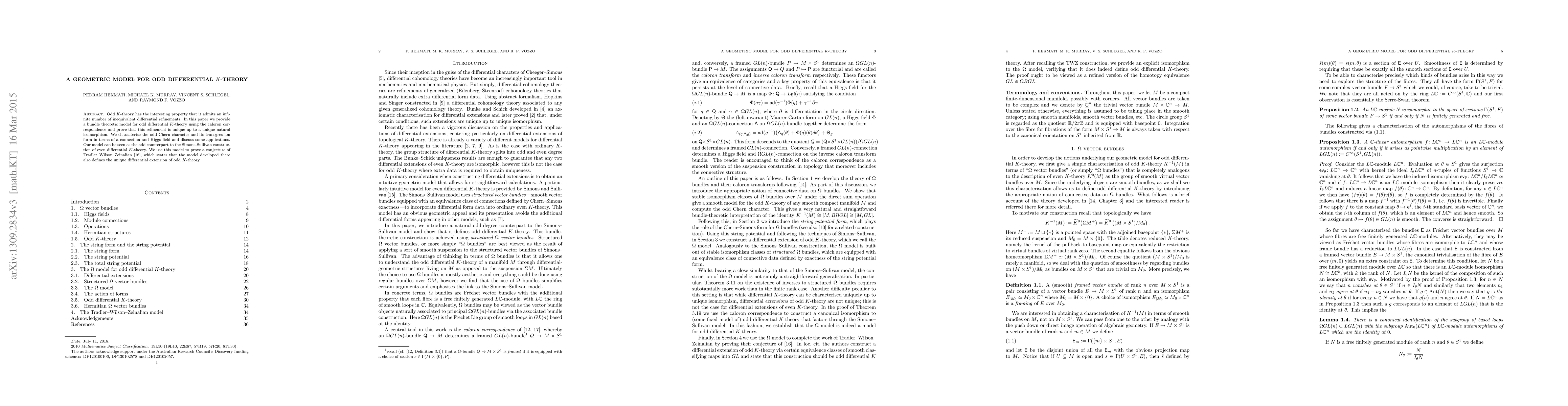 Odd $K$-theory has the interesting property that it admits an infinite number of inequivalent differential refinements. In this paper we provide a bundle theoretic model for odd differential $K$-theory using the caloron correspondence and prove that this refinement is unique up to a unique natural isomorphism. We characterise the odd Chern character and its transgression form in terms of a connection and Higgs field and discuss some applications. Our model can be seen as the odd counterpart to the Simons-Sullivan construction of even differential $K$-theory. We use this model to prove a conjecture of Tradler-Wilson-Zeinalian regarding a related differential extension of odd $K$-theory