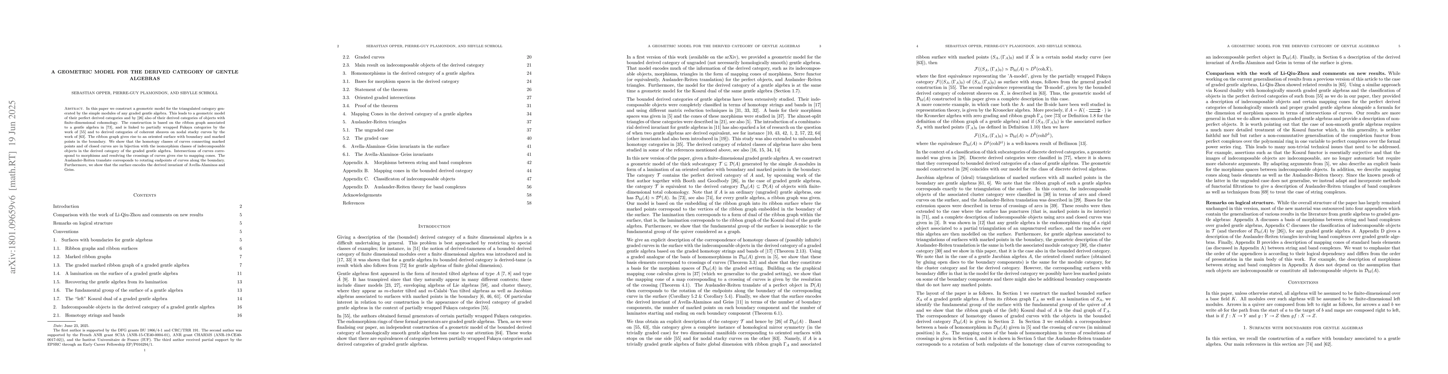 This paper constructs a geometric model for the derived category of gentle algebras using ribbon graphs, showing a bijection between homotopy classes of curves and indecomposable objects in the derived category, and linking it to partially wrapped Fukaya categories and derived categories of nodal stacky curves.