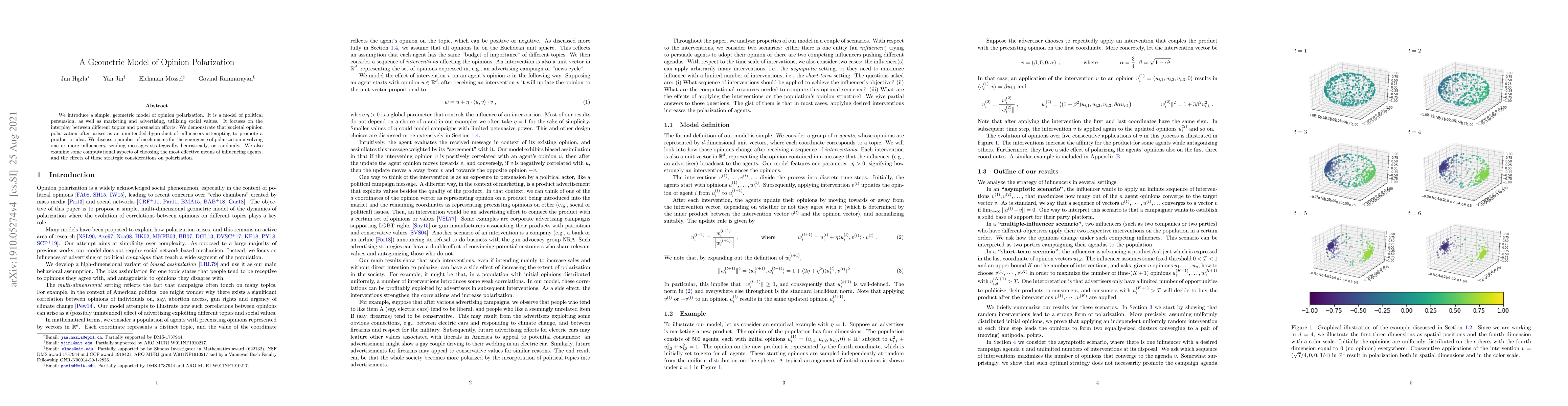 We introduce a simple, geometric model of opinion polarization. It is a model of political persuasion, as well as marketing and advertising, utilizing social values. It focuses on the interplay between different topics and persuasion efforts. We demonstrate that societal opinion polarization often arises as an unintended byproduct of influencers attempting to promote a product or idea. We discuss a number of mechanisms for the emergence of polarization involving one or more influencers, sending messages strategically, heuristically, or randomly. We also examine some computational aspects of choosing the most effective means of influencing agents, and the effects of those strategic considerations on polarization.