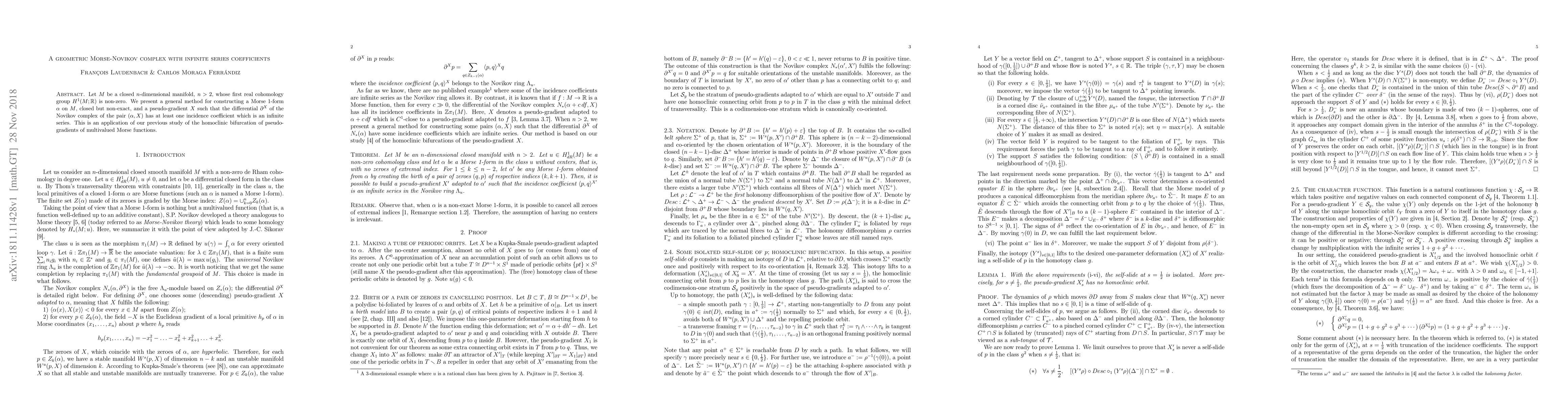 Let M be a closed n-dimensional manifold, n > 2, whose first real cohomology group H 1 (M ; R) is non-zero. We present a general method for constructing a Morse 1-form $\alpha$ on M , closed but non-exact, and a pseudo-gradient X such that the differential $\partial$ X of the Novikov complex of the pair ($\alpha$, X) has at least one incidence coefficient which is an infinite series. This is an application of our previous study of the homoclinic bifurcation of pseudo-gradients of multivalued Morse functions.
