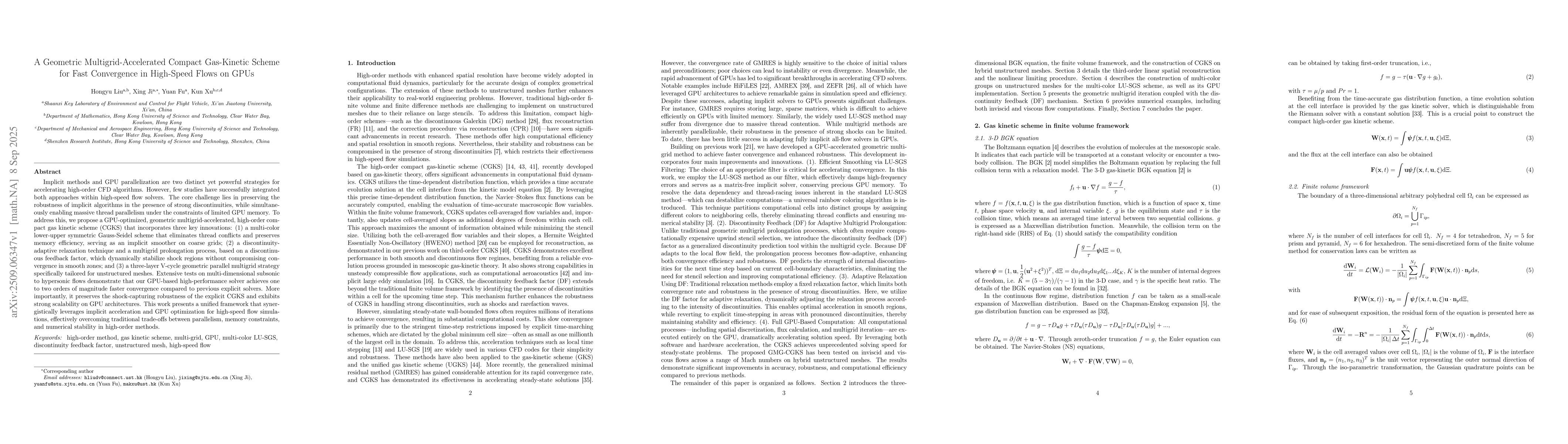 Implicit methods and GPU parallelization are two distinct yet powerful strategies for accelerating high-order CFD algorithms. However, few studies have successfully integrated both approaches within high-speed flow solvers. The core challenge lies in preserving the robustness of implicit algorithms in the presence of strong discontinuities, while simultaneously enabling massive thread parallelism under the constraints of limited GPU memory. To address this, we propose a GPU-optimized, geometric multigrid-accelerated, high-order compact gas kinetic scheme (CGKS) that incorporates three key innovations: (1) a multi-color lower-upper symmetric Gauss-Seidel scheme that eliminates thread conflicts and preserves memory efficiency, serving as an implicit smoother on coarse grids; (2) a discontinuity-adaptive relaxation technique and a multigrid prolongation process, based on a discontinuous feedback factor, which dynamically stabilize shock regions without compromising convergence in smooth zones; and (3) a three-layer V-cycle geometric parallel multigrid strategy specifically tailored for unstructured meshes. Extensive tests on multi-dimensional subsonic to hypersonic flows demonstrate that our GPU-based high-performance solver achieves one to two orders of magnitude faster convergence compared to previous explicit solvers. More importantly, it preserves the shock-capturing robustness of the explicit CGKS and exhibits strong scalability on GPU architectures. This work presents a unified framework that synergistically leverages implicit acceleration and GPU optimization for high-speed flow simulations, effectively overcoming traditional trade-offs between parallelism, memory constraints, and numerical stability in high-order methods.