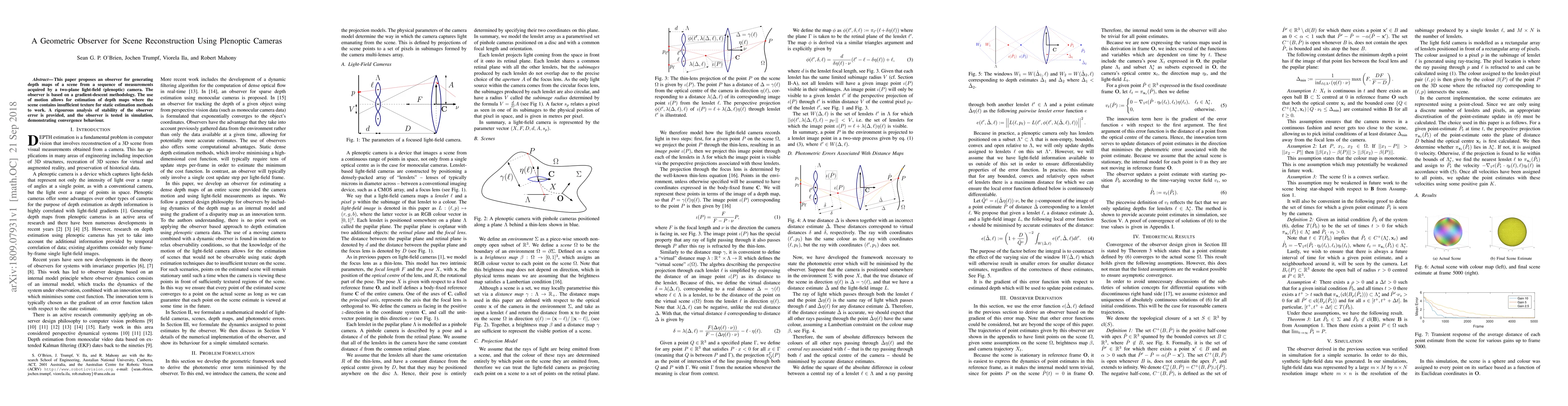 A new observer is proposed for generating depth maps from plenoptic camera measurements, using a gradient-descent methodology to estimate depth in scenes with insufficient texture. The approach demonstrates convergence behavior and shows promise for improving scene reconstruction.