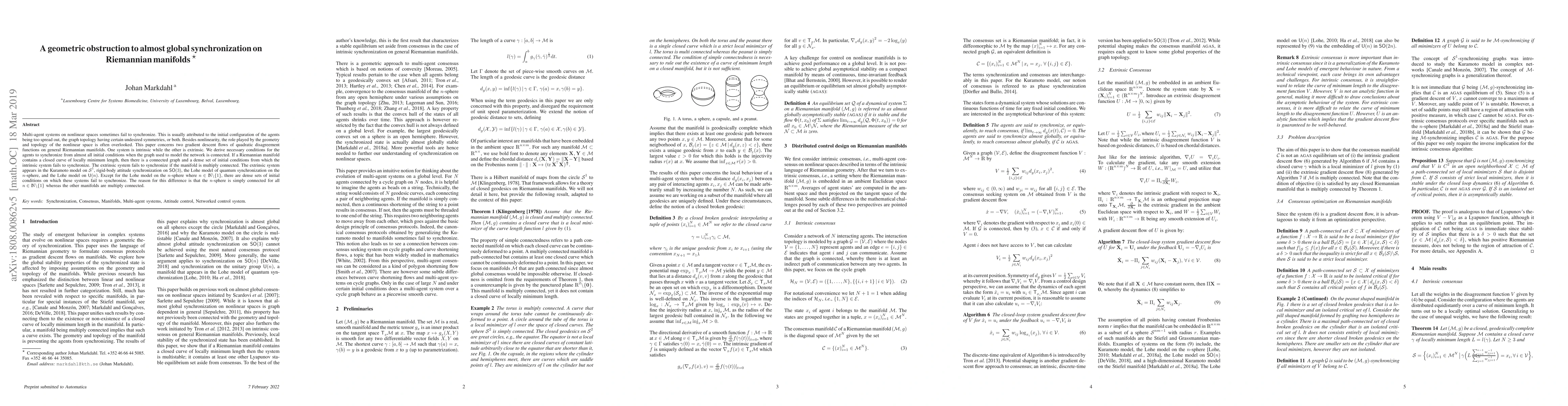 Multi-agent systems on nonlinear spaces sometimes fail to synchronize. This is usually attributed to the initial configuration of the agents being too spread out, the graph topology having certain undesired symmetries, or both. Besides nonlinearity, the role played by the geometry and topology of the nonlinear space is often overlooked. This paper concerns two gradient descent flows of quadratic disagreement functions on general Riemannian manifolds. One system is intrinsic while the other is extrinsic. We derive necessary conditions for the agents to synchronize from almost all initial conditions when the graph used to model the network is connected. If a Riemannian manifold contains a closed curve of locally minimum length, then there is a connected graph and a dense set of initial conditions from which the intrinsic system fails to synchronize. The extrinsic system fails to synchronize if the manifold is multiply connected. The extrinsic system appears in the Kuramoto model on $\smash{\mathcal{S}^1}$, rigid-body attitude synchronization on $\mathsf{SO}(3)$, the Lohe model of quantum synchronization on the $n$-sphere, and the Lohe model on $\mathsf{U}(n)$. Except for the Lohe model on the $n$-sphere where $n\in\mathbb{N}\backslash\{1\}$, there are dense sets of initial conditions on which these systems fail to synchronize. The reason for this difference is that the $n$-sphere is simply connected for all $n\in\mathbb{N}\backslash\{1\}$ whereas the other manifolds are multiply connected.