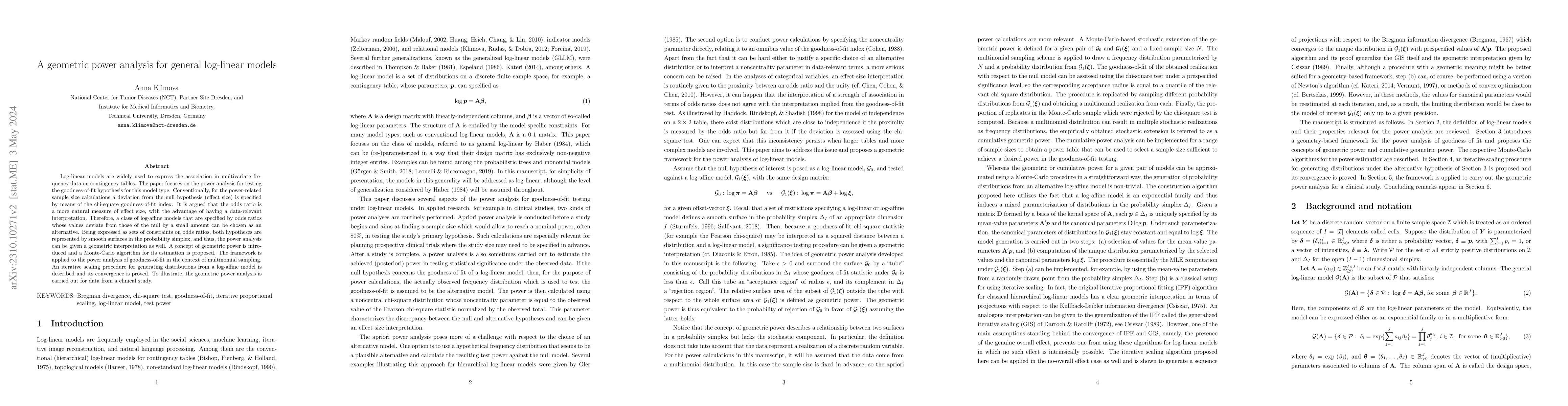 This paper introduces a geometric power analysis for log-linear models, arguing that odds ratios provide a more intuitive effect size measure than chi-square indices. It proposes a Monte-Carlo algorithm for estimating geometric power and applies this framework to goodness-of-fit testing in multinomial sampling, supported by a clinical study example.