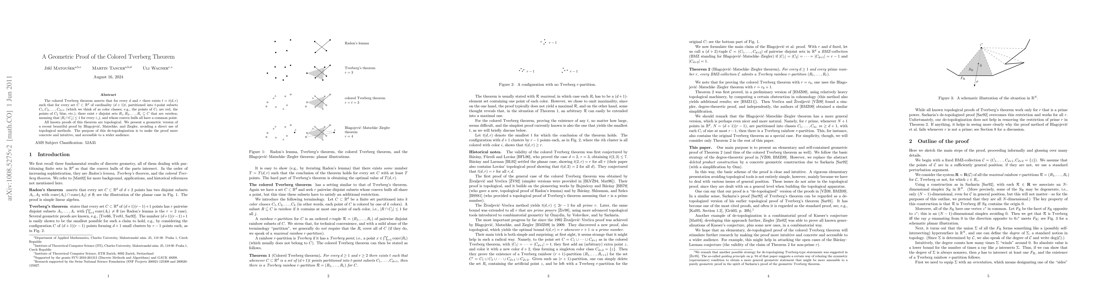 The colored Tverberg theorem asserts that for every d and r there exists t=t(d,r) such that for every set C in R^d of cardinality (d+1)t, partitioned into t-point subsets C_1,C_2,...,C_{d+1} (which we think of as color classes; e.g., the points of C_1 are red, the points of C_2 blue, etc.), there exist r disjoint sets R_1,R_2,...,R_r \subseteq C that are "rainbow", meaning that |R_i \cap C_j| < 2 for every i,j, and whose convex hulls all have a common point. All known proofs of this theorem are topological. We present a geometric version of a recent beautiful proof by Blagojevi\'c, Matschke, and Ziegler, avoiding a direct use of topological methods. The purpose of this de-topologization is to make the proof more concrete and intuitive, and accessible to a wider audience.