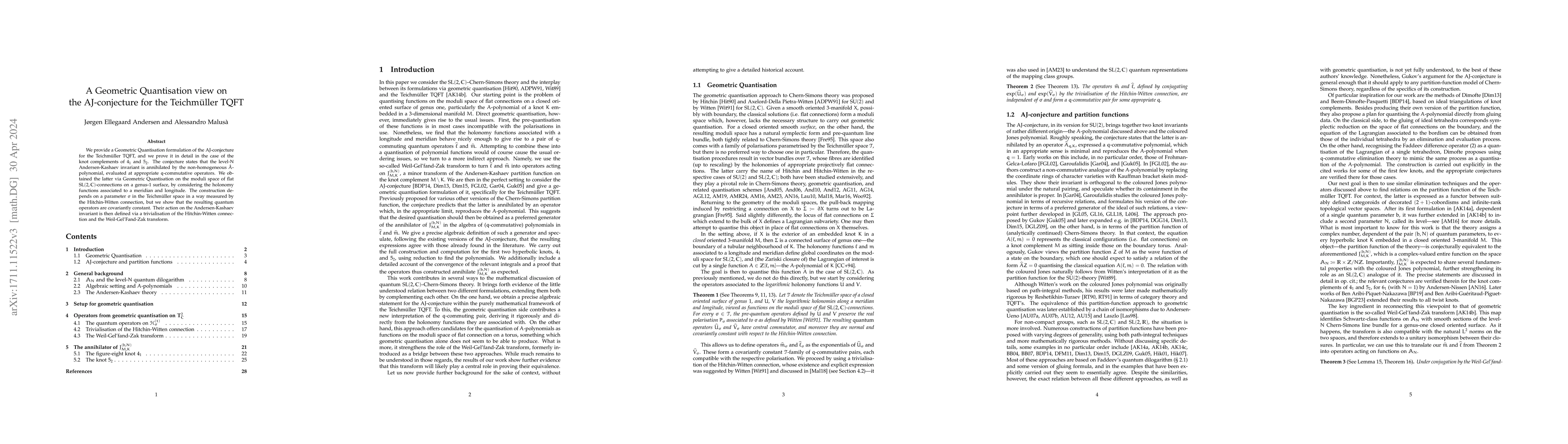 We provide a Geometric Quantisation formulation of the AJ-conjecture for the Teichm\"{u}ller TQFT, and we prove it in detail in the case of the knot complements of $4_{1}$ and $5_2$. The conjecture states that the level-$N$ Andersen-Kashaev invariant, $J^{(\mathrm{b},N)}_{M,K}$, is annihilated by the non-homogeneous $\hat{A}$-polynomial, evaluated at appropriate $q$-commutative operators. We obtained the latter via Geometric Quantisation on the moduli space of flat $\operatorname{SL}(2,\mathbb{C})$-connections on a genus-$1$ surface, by considering the holonomy functions associated to a meridian and longitude. The construction depends on a parameter $\sigma$ in the Teichm\"{u}ller space in a way measured by the Hitchin-Witten connection, but we show that the resulting quantum operators are covariantly constant. Their action on $J^{(\mathrm{b},N)}_{M,K}$ is then defined via a trivialisation of the Hitchin-Witten connection and the Weil-Gel'Fand-Zak transform.