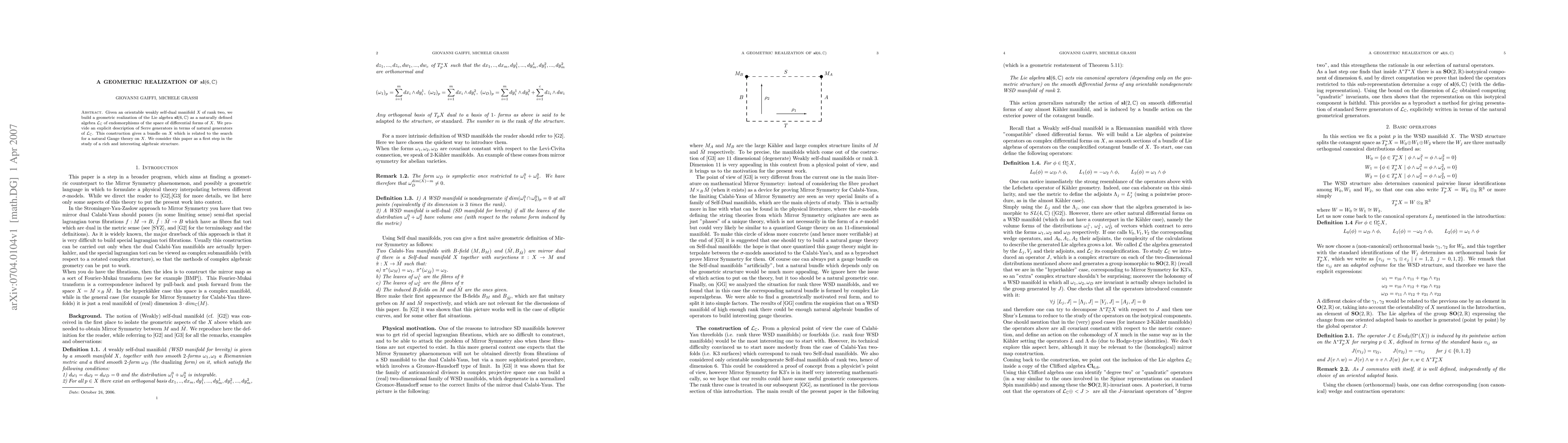Researchers create a geometric realization of the Lie algebra sl(6,C) as an algebra of endomorphisms on differential forms of a specific manifold, aiming to find a natural gauge theory.