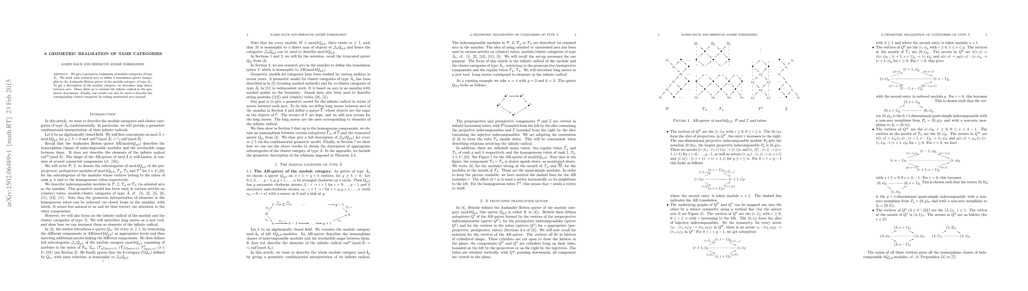 We give a geometric realization of module categories of type $\tilde{A}_n$. We work with oriented arcs to define a translation quiver isomorphic to the Auslander-Reiten quiver of the module category of type $\tilde{A}_n$. To get a description of the module category, we introduce long moves between arcs. These allow us to include the infinite radical in the geometric description. Finally, our results can also be used to describe the corresponding cluster categories by taking unoriented arcs instead.