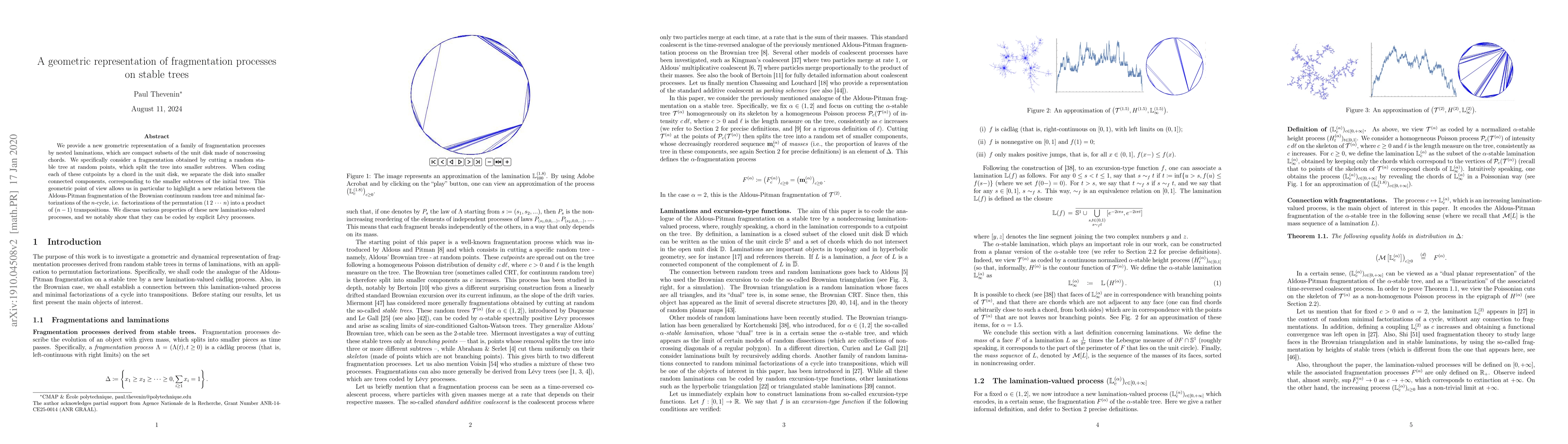 Researchers develop a geometric representation of fragmentation processes on stable trees using nested laminations, highlighting new relations between Brownian continuum random tree and minimal factorizations of the n-cycle.