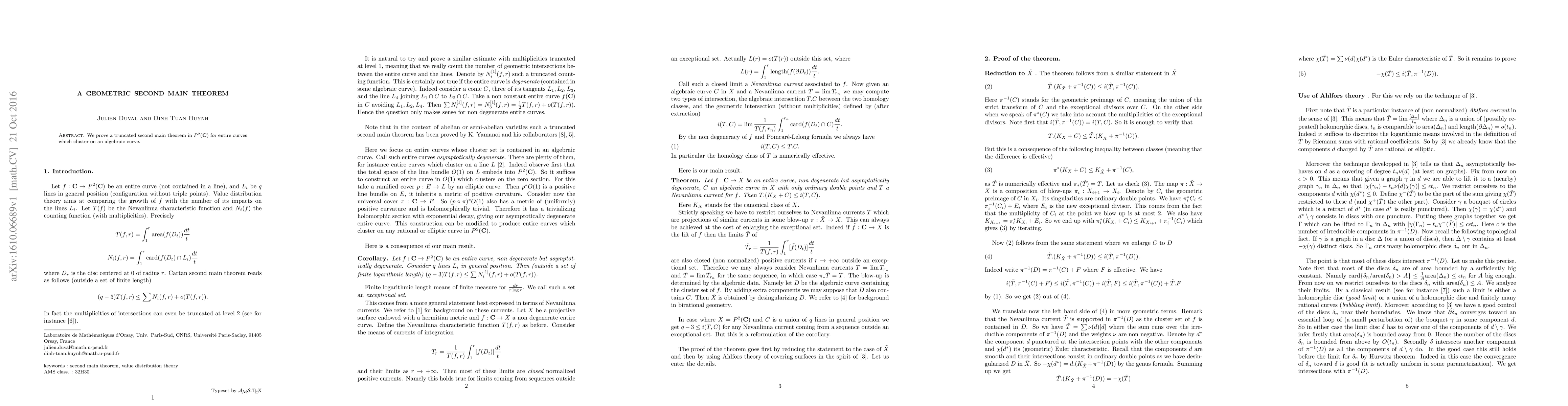 We prove a truncated second main theorem in the projective plane for entire curves which cluster on an algebraic curve.