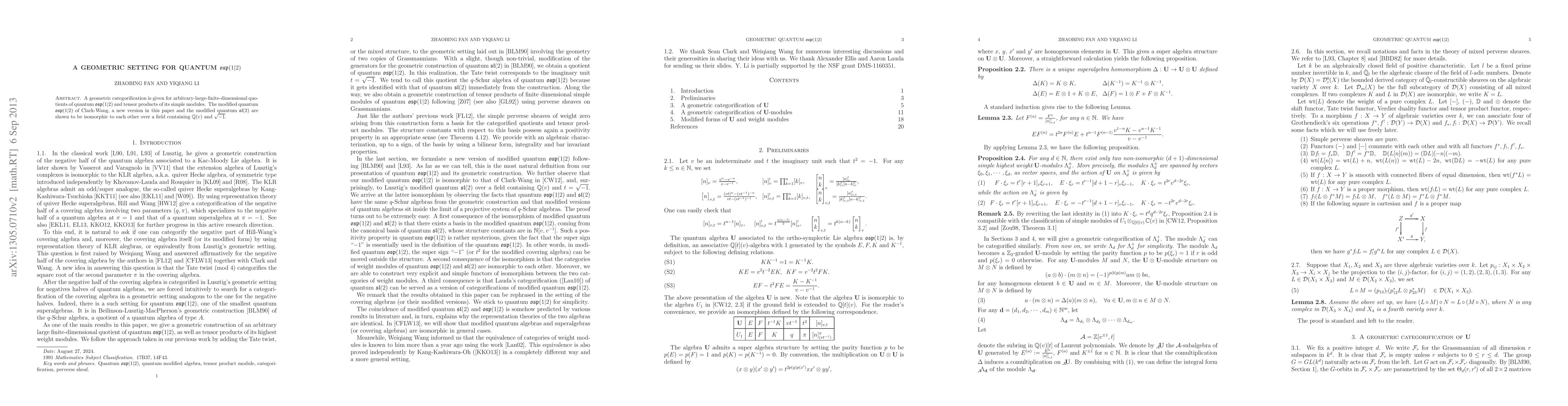 This paper presents a geometric categorification for finite-dimensional quotients of quantum osp(1|2) and explores the isomorphism between the modified quantum osp(1|2) and the modified quantum sl(2) over fields containing rational functions of v and a root of -1.