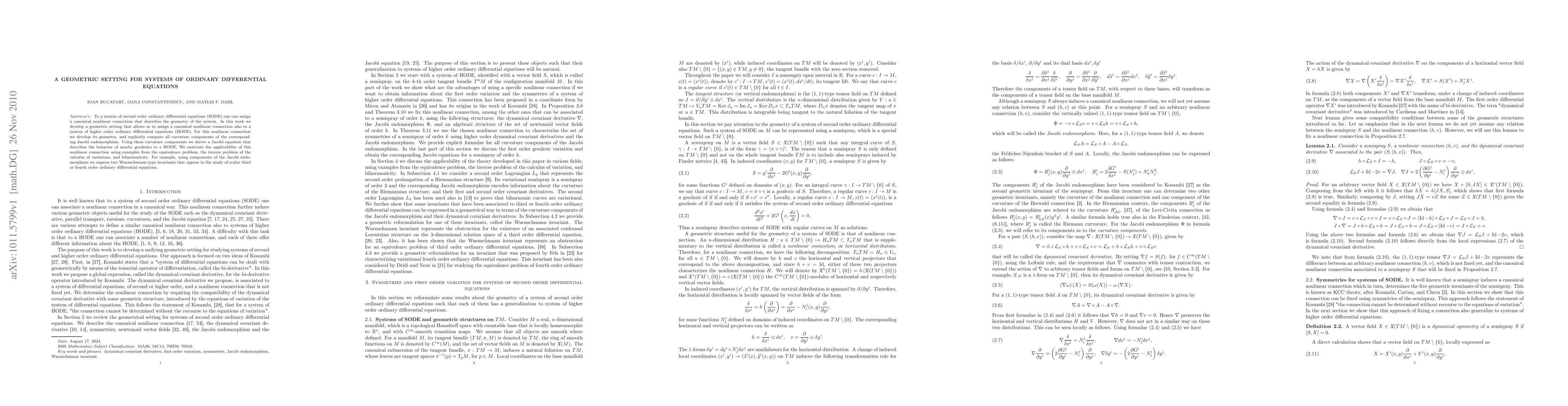 To a system of second order ordinary differential equations (SODE) one can assign a canonical nonlinear connection that describes the geometry of the system. In this work we develop a geometric setting that allows us to assign a canonical nonlinear connection also to a system of higher order ordinary differential equations (HODE). For this nonlinear connection we develop its geometry, and explicitly compute all curvature components of the corresponding Jacobi endomorphism. Using these curvature components we derive a Jacobi equation that describes the behavior of nearby geodesics to a HODE. We motivate the applicability of this nonlinear connection using examples from the equivalence problem, the inverse problem of the calculus of variations, and biharmonicity. For example, using components of the Jacobi endomorphism we express two Wuenschmann-type invariants that appear in the study of scalar third or fourth order ordinary differential equations.