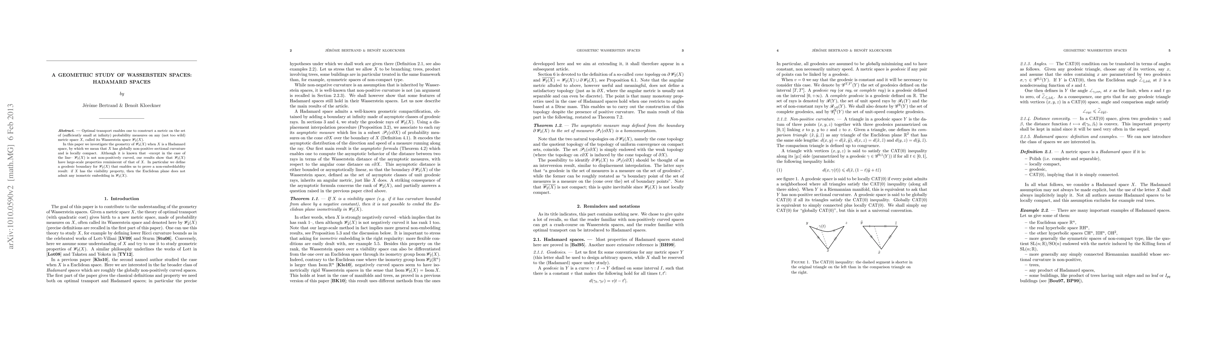 This paper examines the geometry of Wasserstein spaces W(X) when X is a Hadamard space, revealing that despite not having non-positive curvature, W(X) shares large-scale properties with X. It introduces a geodesic boundary for W(X) and proves that if X has the visibility property, then the Euclidean plane cannot be isometrically embedded in W(X).