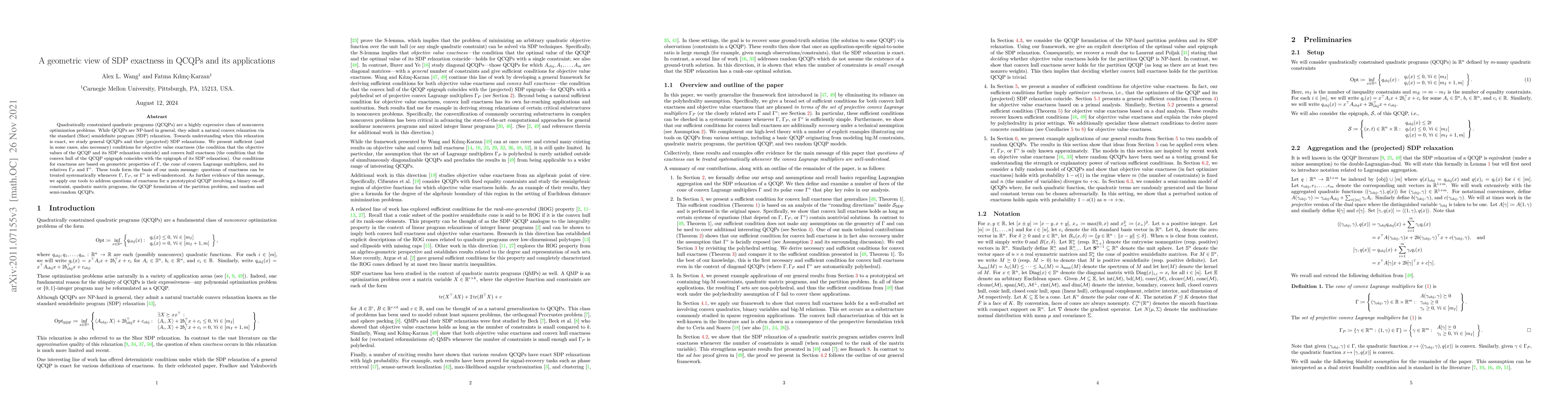 This paper explores the exactness of semidefinite program (SDP) relaxations for quadratically constrained quadratic programs (QCQPs) through geometric properties of associated cones. It provides sufficient and necessary conditions for both objective value and convex hull exactness based on these geometric properties, demonstrating the approach's applicability to various QCQP formulations.