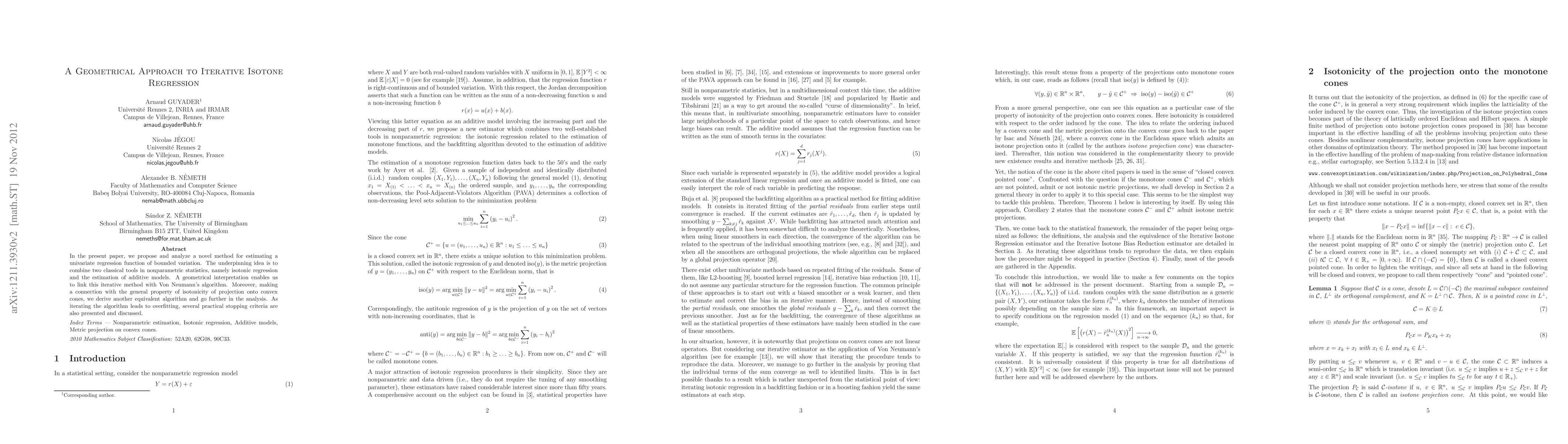 This paper introduces a novel iterative method for estimating a univariate regression function of bounded variation by combining isotonic regression and additive model estimation. It geometrically links the method to Von Neumann's algorithm and discusses practical stopping criteria to mitigate overfitting.