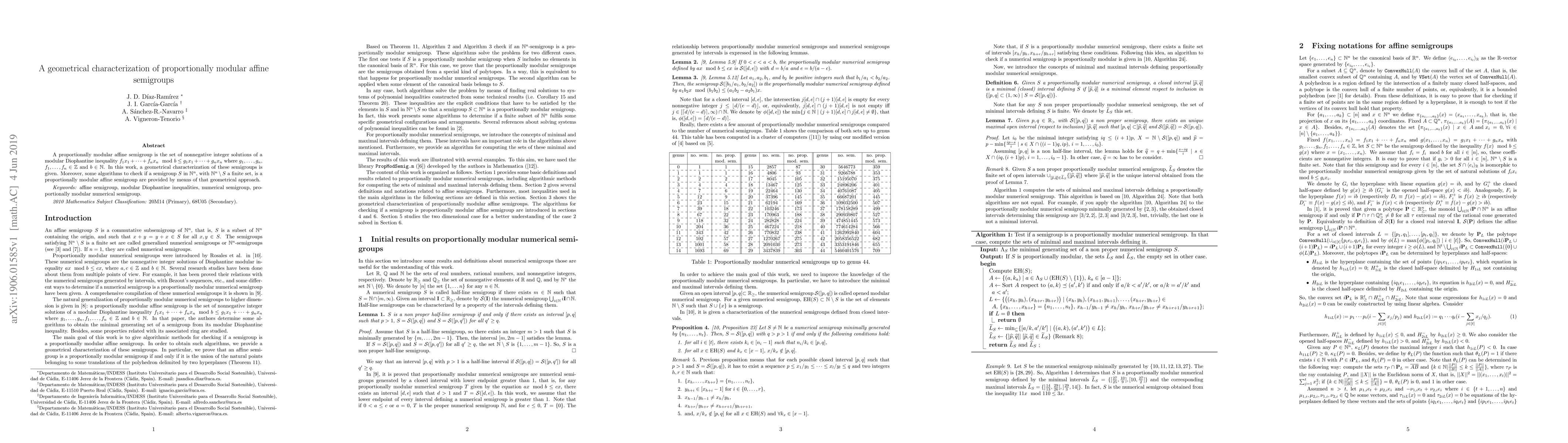Researchers provide a geometrical characterization of proportionally modular affine semigroups, enabling new algorithms to check if a given set is part of this type of semigroup.