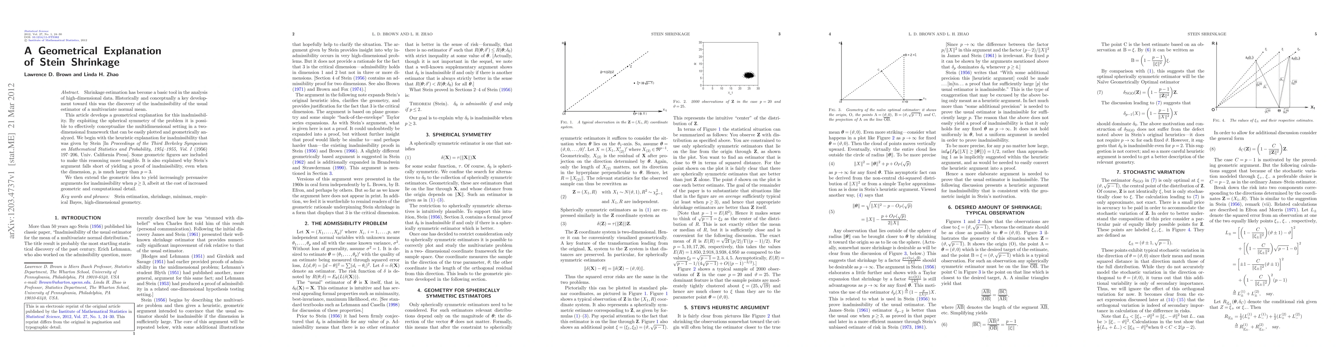 Shrinkage estimation has become a basic tool in the analysis of high-dimensional data. Historically and conceptually a key development toward this was the discovery of the inadmissibility of the usual estimator of a multivariate normal mean. This article develops a geometrical explanation for this inadmissibility. By exploiting the spherical symmetry of the problem it is possible to effectively conceptualize the multidimensional setting in a two-dimensional framework that can be easily plotted and geometrically analyzed. We begin with the heuristic explanation for inadmissibility that was given by Stein [In Proceedings of the Third Berkeley Symposium on Mathematical Statistics and Probability, 1954--1955, Vol. I (1956) 197--206, Univ. California Press]. Some geometric figures are included to make this reasoning more tangible. It is also explained why Stein's argument falls short of yielding a proof of inadmissibility, even when the dimension, $p$, is much larger than $p=3$. We then extend the geometric idea to yield increasingly persuasive arguments for inadmissibility when $p\geq3$, albeit at the cost of increased geometric and computational detail.