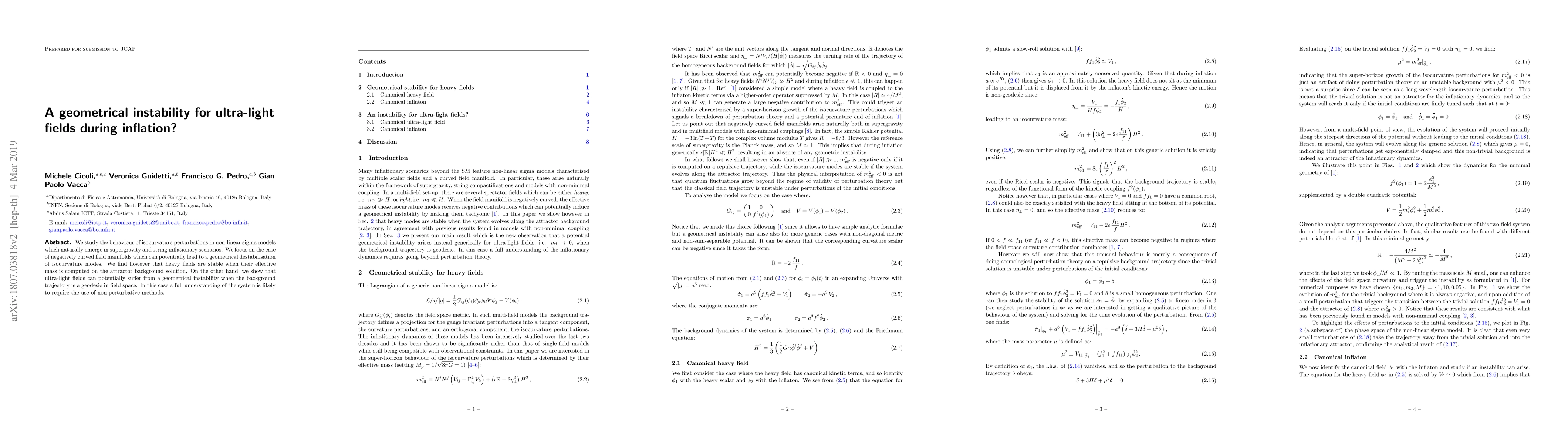 This paper investigates the behavior of isocurvature perturbations in non-linear sigma models during inflation, finding that ultra-light fields may experience geometrical instability when their background trajectory is a geodesic in field space, necessitating non-perturbative methods for a full understanding.