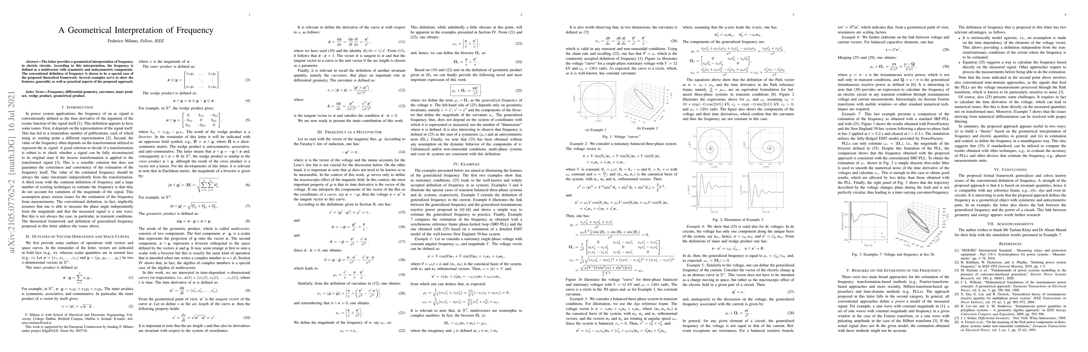 This paper proposes a geometrical interpretation of frequency in electric circuits, defining it as a multivector with symmetric and antisymmetric components, and demonstrates its generality through practical examples. The conventional frequency definition is shown to be a special case within this new theoretical framework.