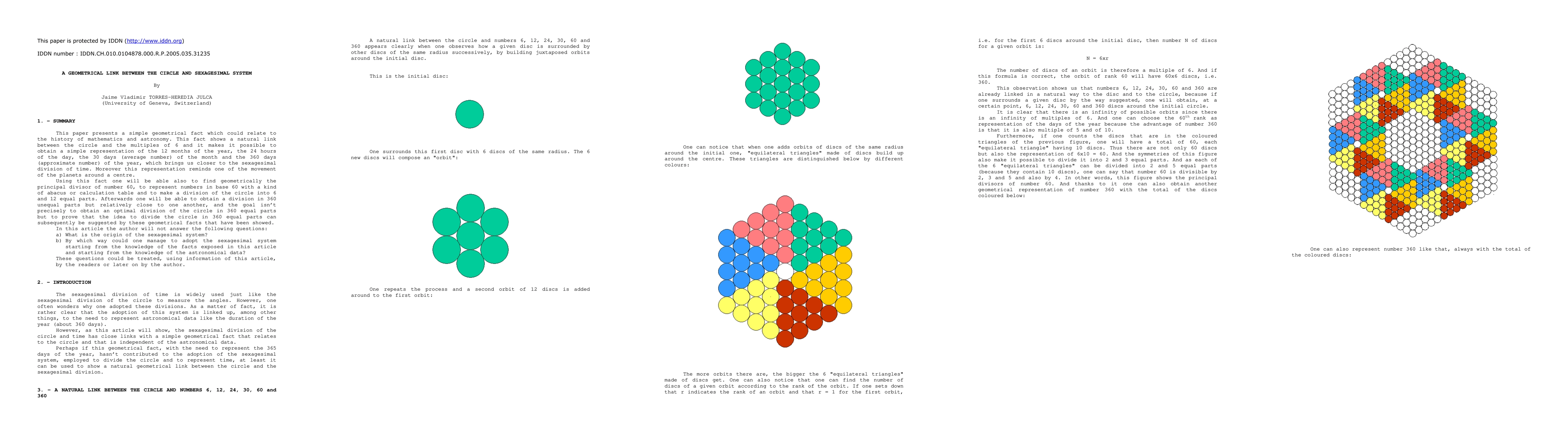 This paper reveals a geometric link between the circle and sexagesimal numbers, providing a representation of time and suggesting how 360 equal parts could have been divided from 6 and 12 equal parts.