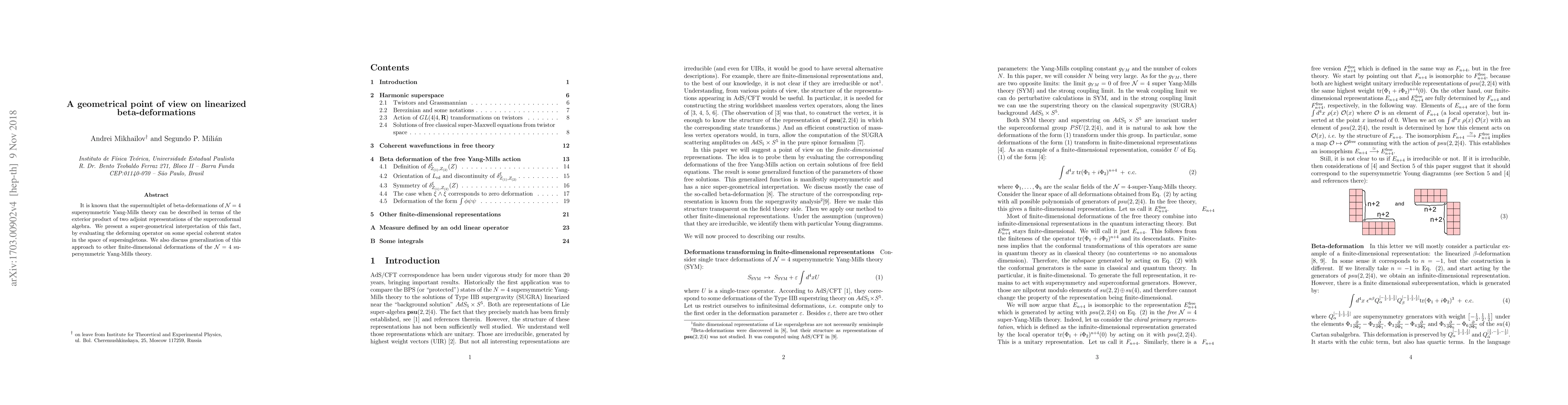 This paper provides a geometrical interpretation of beta-deformations in supersymmetric Yang-Mills theory using special coherent states in the space of supersingletons.