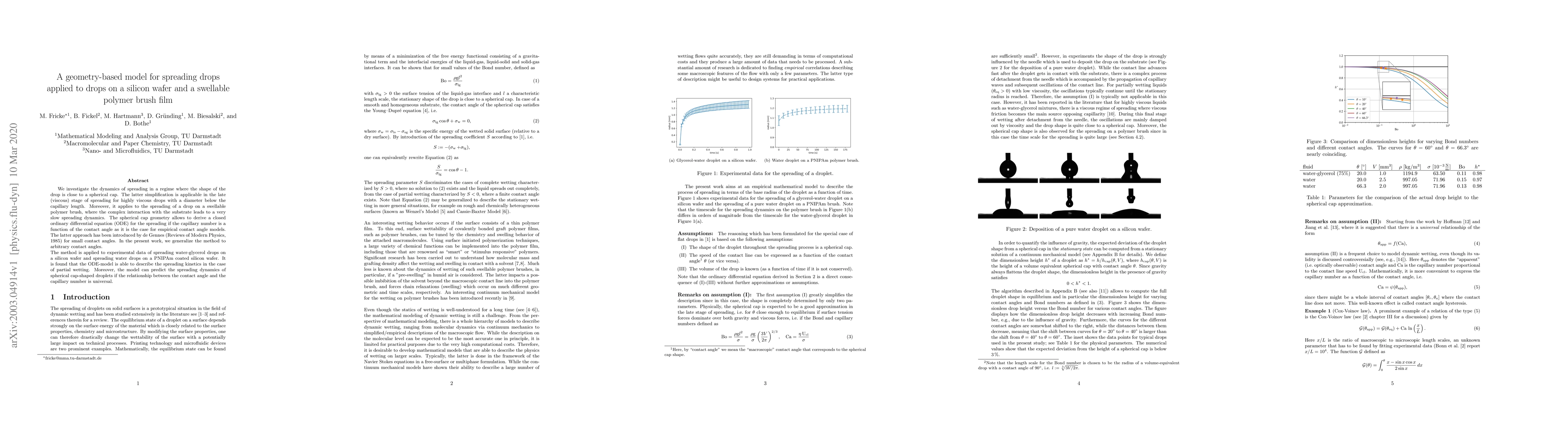 We investigate the dynamics of spreading in a regime where the shape of the drop is close to a spherical cap. The latter simplification is applicable in the late (viscous) stage of spreading for highly viscous drops with a diameter below the capillary length. Moreover, it applies to the spreading of a drop on a swellable polymer brush, where the complex interaction with the substrate leads to a very slow spreading dynamics. The spherical cap geometry allows to derive a closed ordinary differential equation (ODE) for the spreading if the capillary number is a function of the contact angle as it is the case for empirical contact angle models. The latter approach has been introduced by de Gennes (Reviews of Modern Physics, 1985) for small contact angles. In the present work, we generalize the method to arbitrary contact angles. The method is applied to experimental data of spreading water-glycerol drops on a silicon wafer and spreading water drops on a PNIPAm coated silicon wafer. It is found that the ODE-model is able to describe the spreading kinetics in the case of partial wetting. Moreover, the model can predict the spreading dynamics of spherical cap-shaped droplets if the relationship between the contact angle and the capillary number is universal.