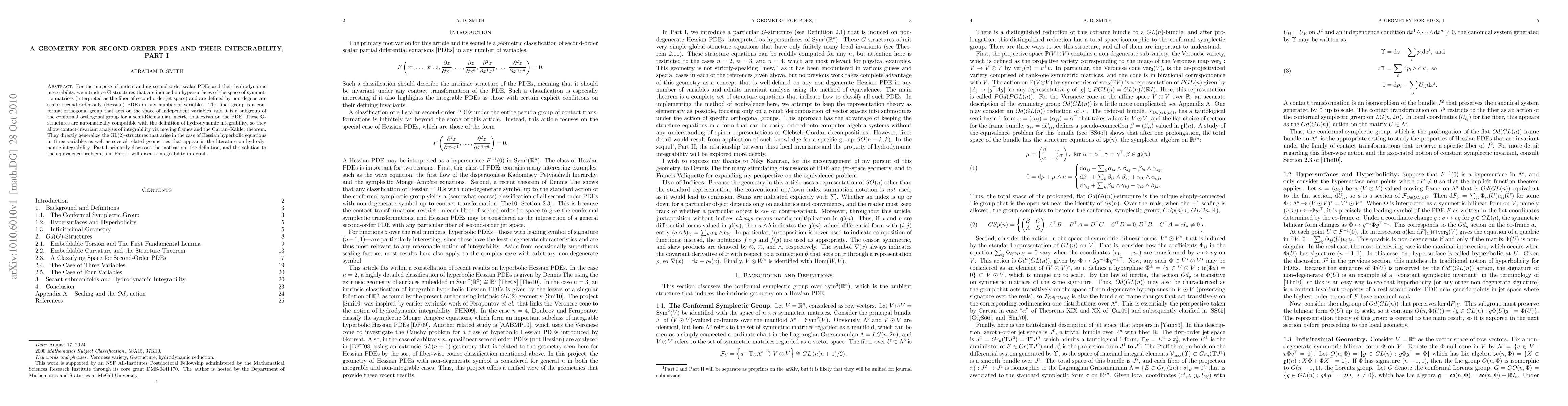 Researchers introduce a new geometry for second-order partial differential equations (PDEs) that allows for contact-invariant analysis of integrability, generalizing existing GL(2)-structures to any number of variables.