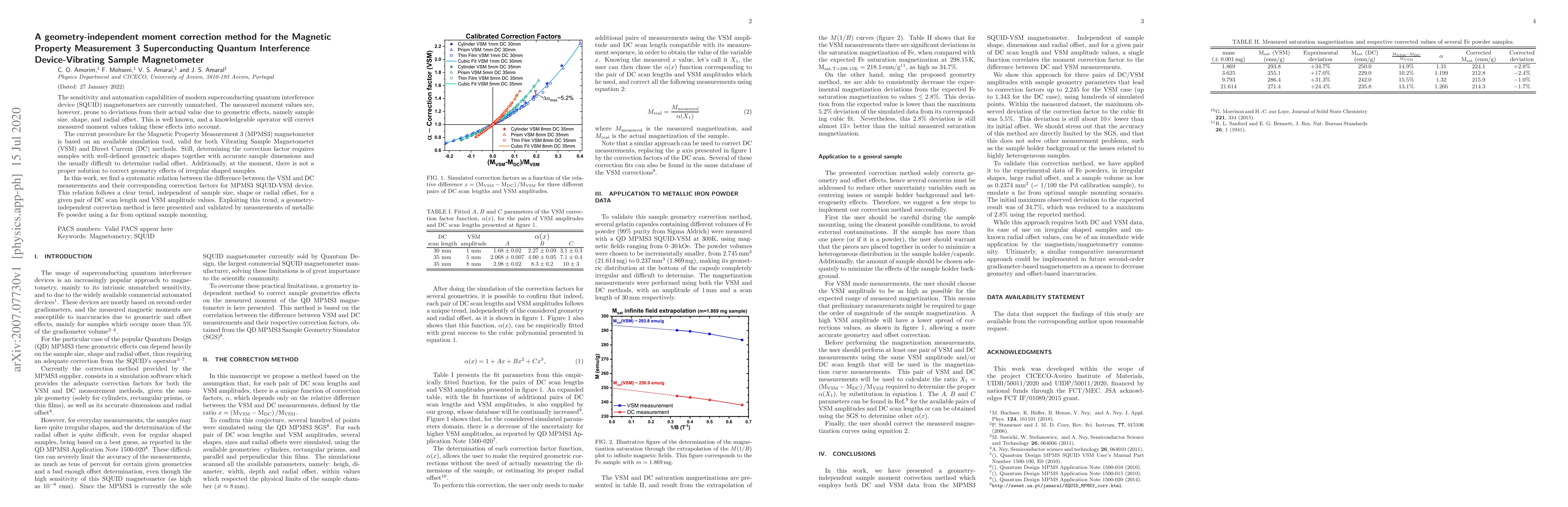 This paper introduces a novel geometry-independent correction method for the Magnetic Property Measurement 3 SQUID-VSM magnetometer, addressing deviations in measured moment values due to geometric effects. The proposed method leverages a systematic relation between VSM and DC measurements, validated through experiments on metallic Fe powder.
